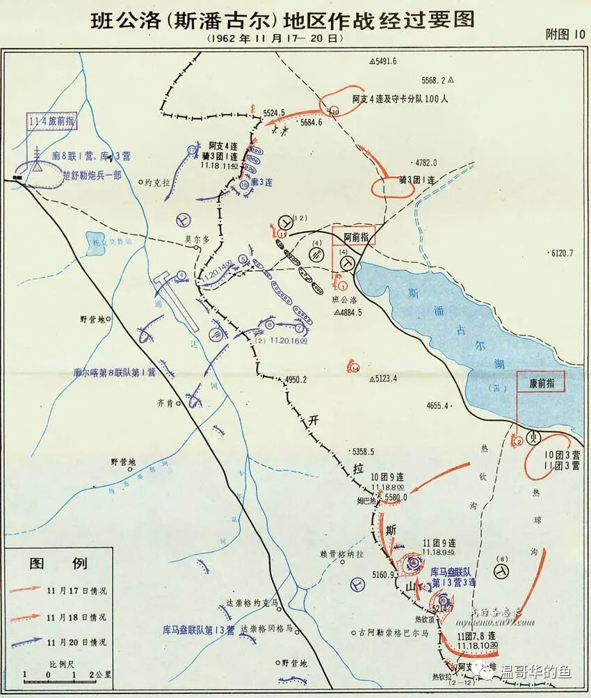 西线主战场转移到班公湖正南方10公里的斯潘古尔湖畔,也就是著名的班公洛反击战。11月18日清晨,印军在炮火支援下向驻守斯潘古尔湖地区的新疆边防部队发动攻击。严阵以待的我军以一个团的兵力奋起还击,穿插部队冒着零下40度的严寒和漫天风雪翻越海拔5200米的冰大坂(也就是冰川),按时抵达敌后侧的反击出发阵地。经两个多小时激战,我军三路部队攻克印军3个据点,随即转向夺取了印军炮兵阵地,并用炮火压制破坏另外3个据点,19日印军全军溃退逃回印度境内,到20日中国军队歼灭印军廓尔喀第8联队第1营的大部分兵力,将西段入侵印军据点全部清除。打得疼了才能长记性,如今不论是在加勒万河谷、班公湖还是西段边境其它地方有冲突,双方脱离接触后坐下来谈判的地点都在楚舒勒机场旁边的莫尔多边境人员集合点,62年印军惨败之地。