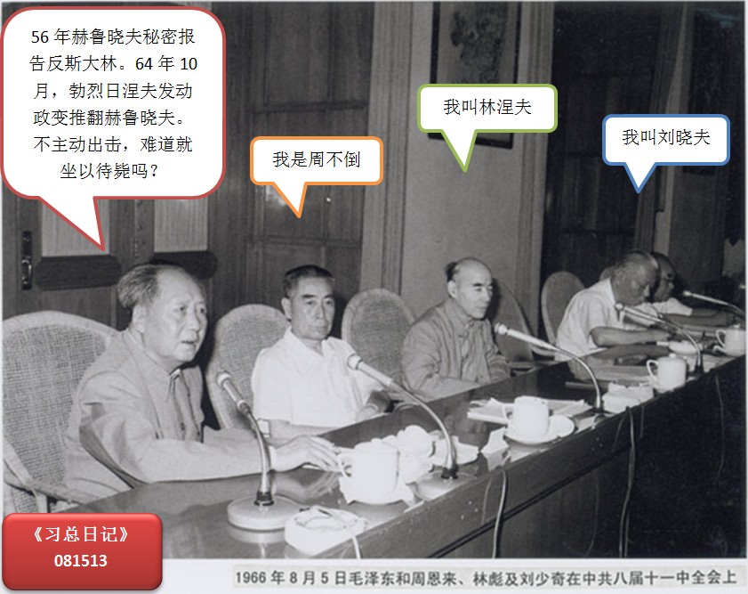 来源:万维博客 作者:何岸泉 习总日记(2013,8,15) 今天是八月十五,西方的元宵节,他们称为普世节。我们的元宵节是在农历八月十五。我们的元宵节讲究团圆,他们的普世节推崇自由。我们的团圆追求活着就好,他们的自由主张民主人权。 我们中华民族最高的生活理想,就是每逢佳节能够阖家团圆,如春节和元宵节等。有位马先生告诉我们,为了帮助中华民族实现这一崇高伟大理想,靠国民党领导是肯定不行的。于是,马先生派苏联教练前来指导我们共产党,经过二十八年的努力,终于吭哧吭哧地把国民党赶到了台湾。在党的领导下,实现了人民当家作主。我们修建了贯通全国的铁路,还有公路和航空运输系统,我们还通过了常回家看看的法律。所有这些,都是为了一个目的,让解放了的老百姓都能在春节元宵节这两个重要日子里,回家团圆。 因此,团圆对于我们中华民族来说,比自由更重要,比人权更重要。西方有很多节日,却没有团圆节,这就很说明问题了。 为了百姓团圆,党付出了很多很多。首先,坚持党的领导,就是为了确保社会安定和谐,铁路公路交通畅通,百姓团圆才有保障。2011年1月,埃及人民推翻了维护和谐社会30年的穆巴拉克总统,从此,埃及社会动荡混乱,人民生命受到威胁,团圆从廉价变成了奢望。昨天(8月14日)开始,埃及军政府宣布为期一个月的全国紧急状态。此外,当局还宣布,开罗和其他一些城市将实施宵禁。埃及军方武力清场的结果,据报已造成百人的死亡。据不完全统计,从埃及人民推翻穆巴拉克至今,民众在示威游行冲突中的死亡人数,大大超过中国地方政府野蛮施政中所造成中国人民死亡人数。 推翻专制政权的恶果已经通过埃及人民的鲜血和死亡,提醒中国民众,西方的民主自由生活不是那么容易享用的。我们党力所能及的,就是保障中国人民都能回家与亲人团聚,共享天伦之乐。但前提是你们要服从党的领导,否则埃及的今天,就是中国的明天。 昨天,8月14日,中共中央政治局常委、中央党的群众路线教育实践活动领导小组组长刘云山,在京主持召开中央党的群众路线教育实践活动领导小组第三次会议。 大家一定很奇怪为何我还未露面。 告诉大家,我已经从北戴河回到北京,正和几位常委一起商讨薄熙来的庭审剧本细节。薄熙来的开庭审理是党的头等大事,所以我们放下其他工作,集中精力,团结一致,专门应付薄熙来案件。 为何要如此这般兴师动众?因为阻力困难多多。 困难之一,是薄熙来死不低头。困难之二,是党内薄熙来同情者不少,他们给予我们很大压力。困难之三,党内外对审理薄熙来过程有很多意见,认为还不如审判四人帮透明。困难之四,党内还有比薄熙来更大的老虎,只打薄熙来,彰显不公,所以我进退两难。 正逢毛泽东专职摄影记者出毛主席的影集,请我题字。我没有题字,怕带了坏头。但我给影集取了名字,并告诉作者别公开这书名是我习近平起的。我给影集取名为《毛泽东正值神州有事时》。怎么样?很有我习近平的风格吧。估计没有多少人会知道是我起的书名。 起这书名,一是影集中的毛主席,正值文革前后;二是现在中国,也正处于多事之秋。 毛主席在文革有事之秋,要到达两个目的,一是防止被中国的赫鲁晓夫和勃烈日涅夫打倒。本着先下手为强,后下手遭殃的做人基本原则,毛主席英明主动地摧毁刘少奇邓小平一手打造的刘邓牌党政官僚系统。二是要培植以老婆江青侄子毛远新为首的毛牌势力。这一破一立,说简单也简单,说复杂也复杂。毛主席为此豪言:“进攻是最好的防御。不破不立,要立就要破,先破后立,乐在其中。” 若有谁还对毛主席文革期间所言所作所为动机尚存疑虑,有空请参考朝鲜修改规范力度高于宪法和劳动党章程的《树立党的唯一思想体系十大原则》,明文规定了“白头山血统”—金正恩一家的政权世袭制即可。 伟大领袖心里清楚得很,若是只打倒而不打死,保不准他们在毛死后东山再起,宰了江皇后和远新太子。学斯先生公开杀,既不符合儒家文化中伪善的优良品质,也不符合道家文化中高尚的道德思想,所以毛主席选择了“整”,整死他们。 可惜,中国人民运气不好,毛岸英太子被美帝杀死在朝鲜。我想,若是岸英大哥不死,党内斗争也就变得毫无意义,刘少奇等也就用不着被整死。刘邓等人可能很高兴很认真一心一意地辅佐毛主席。因为倘若岸英大哥被指定接班,刘少奇一帮人没有什么可埋怨的。而江青毛远新接班,他们就会不服,如汉陈平周勃。毛刘邓死后,刘邓的后代接着如父辈一样,很高兴很认真一心一意地辅佐毛岸英。那就也不会有什么太子党,也不会有什么权贵集团,中国社会也不会那么多贪官污吏,贫富差别不会如此之大。中国可能早就实现了和谐社会,成为第一超级大国,实现了中国梦。 可惜,上帝为难中国,让毛岸英死让毛岸青疯让毛岸龙失踪。 目前,党和国家现也正处于多事之秋,一是反贪反腐任务沉重,一个薄熙来案就暴露出杀也杀不得免也免也不得的两难境地。下手重了,党内不稳,下手太轻,民心浮动。二是经济发展压力沉重。无法再靠圈地卖房发展经济了。城镇化计划问题多多,被质疑是另一种圈地卖房。房价教育医疗费用高耸,社会保障体系单薄,导致普通百姓忧心忡忡,日子过得胆战心惊,怎么敢拿出保命钱来消费你的内需? 党走到这一步,除了维持,也只有维持。
