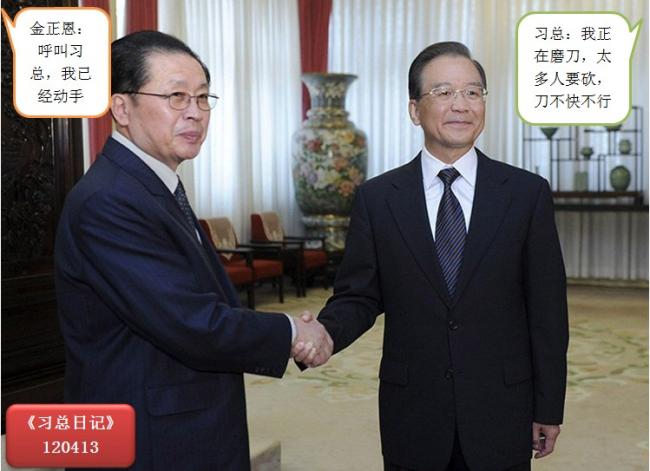 来源:万维博客 作者:何岸泉 习总日记(2013,12,4) 政治局12月3日召开会议,会议内容是分析研究2014年经济工作,听取第二次全国土地调查情况汇报。我主持会议并发表讲话。 我认为,改革开放三十多年来,我们在房地产开发上取得了丰富经验,接下来,是如何把房地产经济从大中城市向城镇地区发展。 房地产经济不但可以带动其他相关无关经济,而且还具有潜力无限的特点。我们的嫦娥已经飞上了月球,将来的房地产可以在月球推广,建立广寒宫城市群。月亮之后有火星,火星之后有土星。以前是革命永无止境,现在是房地产开发永无止境。 一 是的,我特别想抓周永康,因为周永康曾经与薄熙来密谋欲发动政变废了我。这是证据确凿的事,否则薄熙来也不会被秦城。 抓周永康理由充足好处多多。理由上面已经谈了,好处罗列几条:一能开“刑不上政治局常委”的先例。二能威慑其他政治局常委。在紫禁城里,有几只屁股是干净的?三能进一步集权。党从人民手中集中了权力,政治局从党手中集中了权力,我要从政治局手中集中权力。四我习总近平要向北韩金正恩学习,毛泽东虽然不是我爷爷,但我要当一回中国大爷。 国家穷或富不重要,重要的是举国上下团结一致万众归心,北韩做到了,而且做得多么好啊!团结就是力量,北韩国力不怎么样,但是因为团结,所以谁都不敢小觑他,何况我巍巍大中国。经过最近几年的观察我们看到,只要北韩不寻短见,国际社会包括美国,不会把他怎么样。所以我看到了另一条自由之路,那就是北韩金正恩的道路,这是另一条可以选择的路。 中国特色的社会主义道路,与北韩金家天下道路相比,各有优劣各有所长。中国是个大国,北韩是个小国,小国容易因入侵而亡,大国就没有这个忧虑,因此中华虽自满清积弱,却屹立不倒。如果我们不自乱,则可安享万年太平。分析至此,那么我习总近平就发现了一条比“中国特色社会主义道路”更巧妙的梦幻之路,就是北韩式的社会稳定加上中国的人口众多土地辽阔经济发达国库富庶。当然照搬北韩模式不行,原因之一是我没有儿子。 综上所述,一条平坦光明大道出现在我们眼前,经济保持开放,意识形态要收紧再收紧直至一个领袖万众敬仰,五体投地服从唯一的国家领袖,则天下太平万世永昌。 所以我要抓周永康,所以我要设立东海防空识别区,就是要通过抓周威慑其他政治局常委,就是要借钓鱼岛紧张局势抓军权。 古有借道伐虢,今有习总借周永康和钓鱼岛集权。 二 网上最近有篇热门文章名叫《没有了祖国,你将什么都不是》,大家别理他,因为这篇文章不是我写的。如果是我习总写的,那么你们要好好学习深刻领会。 祖国是什么?祖国是曾经的满清?台湾的中华民国?大陆的中华人民共和国?不是,都不是。祖国是那片土地。 祖国是那片土地,土地长在地球上,不会没有的,放一百个心吧我的宝贝,祖国不会没有。 你在哪里出生,哪里就是你的祖国;你在哪里成长,哪里就是你的祖国;你在哪里生活,哪里就是你的祖国。满清可以没有,中华民国可以没有,中华人民共和国可以没有,祖国不会没有。 你的心在哪里,哪里就是你的祖国;你的情在哪里,哪里就是你的祖国。 满清不是你的祖国,中华民国也不是你的祖国,中华人民共和国更不是你的祖国,你的亲人,你自己,就是你的祖国。 爱你的亲人,爱你自己,就是爱祖国。