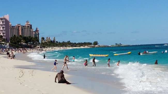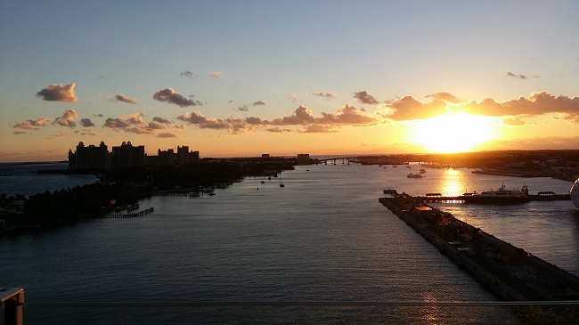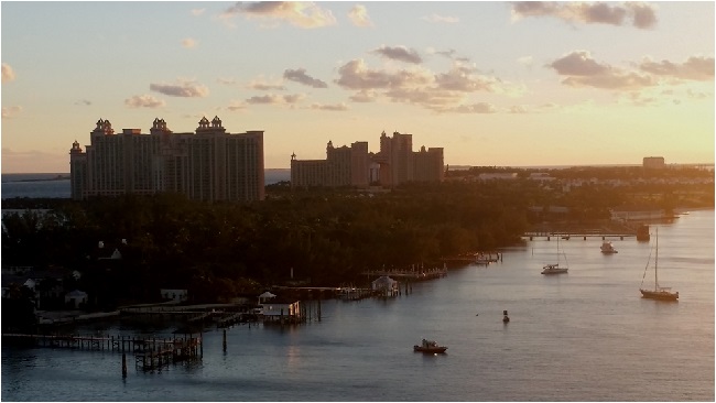 海天 大体上,世界各地的出租车司机都善侃,要了解当地的民风世道,跟他们攀谈一下总能有所收获。在圣马丁,一位的哥摇着头,不断跟我们抱怨长安米贵。他指着前方的一排公寓,说这些房子每平方尺怎么都要300多美元;而山顶上那栋依山望海,气派不凡的大别墅,就不知道要多少million(百万)了。 “猜猜那是谁的房子?大法官的!” 我又问他别的方面生活费用如何。在游轮客看来,圣马丁可是购物的好地方,商店多又免税,很多物品比如比起大陆上的零售价要便宜近一半。可是这位的哥却一下子懊恼起来: “什么都涨价,尤其是食品!现在岛上的大超市都是中国人开的,好多原来本地人的小店都被挤垮了。垄断,暴利!”他指着窗外,“看,这就是一家中国超市!” 我赶紧举起手机,只抢拍到一张模模糊糊的画面。不过他的话并不让我感到惊讶。现在中国人走遍天下,凭自己的勤勉和精明赚钱。在圣马丁岛的七万常驻人口中,华人有近四千,在零售业坐大,恐怕只是刚刚开始。 更何况,的哥啊,你只看到自己头顶的一小片云,却不知在整个加勒比,更大的风云变幻正在上演。 Nassau(拿骚),巴哈马群岛的首府,全球每年吸引游轮旅客人数最多的港口,我们此行停靠的第一站,恰好也是“海洋绿洲”号的船舶注册地。上一次乘游轮时,我们就是在这里偶遇Oasis,那时我们的船就好比巨无霸旁边的一个小矮人。几年过去了,这一次乘着Oasis高头大马故地重游,自然不能错过这迎着朝阳,摆道进港的壮观情景。
