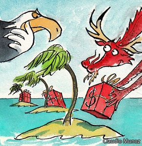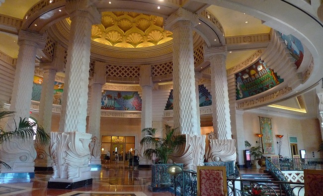 依依不舍地离开the Cloister,向北过来时的街道,便是一座袖珍版的凡尔赛花园。据说,这个花园与旁边的迴廊,是Nassau最受欢迎的婚纱摄影和婚礼举办地,这当然很有道理。草木繁茂,木槿花盛开,睡莲点缀在水池间;一条长长的石阶小径穿圆而过,居中或两旁分布不少形态各异的雕塑,从宙斯、赫拉克勒斯到拿破仑与约瑟芬,乃至老罗斯福,都在此济济一堂,真是奇怪的组合,不知是不是也是哈特福德的趣味。老哈用$1400万美元买下这个本地人从前用来放养走地猪的"猪岛"后,斥巨资打造他心目中的天堂,又一个$1400万,建起岛上第一个高端酒店"绝无仅有海洋俱乐部"(One & Only Ocean Club),迴廊和凡尔赛花园都是为之服务的配套设施。 凡尔赛花园走到尽头,便进入了海洋俱乐部的内院。不好意思拍照,快步通过,眼中也瞥见些大意,低调的豪华,难掩的优雅。幽处取曲径,豁然开朗时,长林椰影,海天澄明。 这里便是著名的Cabbage Beach了,又宽又长的白沙滩舒展着延伸,西边尽头处便是亚特兰蒂斯大酒店。赤足走在沙滩上,一个个海浪激情澎湃地涌来,顷刻被细致的白沙化解,变成脚下结实的湿润,足印竟有凸出的立体感。这里是Nassau最好的沙滩之一,却完全免费向公众开放。知道门道的游轮客们,只需带一条浴巾,到这里占七呎方圆,便可充分享受巴哈马的阳光海风,无疑是性价比极高的一个选择。当然,初次来的游客会更乐意去旁边的亚特兰蒂斯大酒店逛逛。 你不必是旅游杂志或网站的常客,大概也知晓亚特兰蒂斯的大名。无需我多介绍,它一定是加勒比地区乃至整个西半球最富盛名的豪华度假酒店之一。除去三千余间豪华客房,酒店还设有极富人气、号称全世界最大的室外水上游乐场,加勒比地区最大的赌场、游艇停泊港、高尔夫球场、潜水基地、和许多高档餐馆、奢侈品商店以及运动场所。 猜猜这个酒店又是由谁投资开发的? No,no,不是哈特福德了。它的主人是南非亿万富翁科斯纳(Sol Kerzner),也是现今天堂岛的拥有者。哈特福德于1959年买下此岛后大举投资开发,到70年代中将其资产大部转让给他的合伙人,以后廿年间数易其手,直到1994年,科斯纳以1.25亿美元的价格从传媒大亨Merv Griffin手中买下天堂岛,给天堂岛带来新的转机。他花了十几年间,让一个经营困难的度假村脱胎换骨,一步步建成了今天的亚特兰蒂斯。这个大酒店本身就是Nassau最重要的景点,可以说是天堂岛、Nassau乃至巴哈马旅游的标志。 每天,亚特兰蒂斯大酒店都吸引了大量的游客前来瞧热闹。可是它真正的入住率并不很高,据说只有40%多;我的一位同事曾到那里度假,印象也大致如此。这自然与酒店昂贵的价格有关(起码3、400美金一晚,还根本别提至尊套房那$25,000/晚的天价),但是更重要的原因也许还是来巴哈马的游客结构,只有10%的游客会在当地过夜,其他的都是像我们这样的游轮客,到了下午就呼啦啦飞回游轮上,去他乡云游了。 看看时间不早,我们也要打道回船了。伸手叫来一辆小面的,的哥恰好又是一位侃爷。“你们从哪里来的?哦,不不不,我是问老家。你们一定是中国人吧?” 得到肯定的回答,他的话匣子一下子打开了:“中国人不得了啊,中国人现在是这个岛的大Boss!中国人到处在这里建房子,中国人什么都买!全世界现在都得听中国人的!” 听他说得奇怪又别扭,我不禁问:“那你们怎么看?喜欢这种情形吗?” “啊,当然!我们喜欢极了。中国人在这里建了很多东西。他们正在建一个超级大的度假村,比亚特兰蒂斯还要大!很快就要开张啦!” 我和LD面面相觑。真是孤陋寡闻啊,我们竟从来没有听说过这件事! 当“海洋绿洲”号缓缓驶离Nassau港,我站在阳台上,透过船尾的空隙,看着亚特兰蒂斯那独特的身影越来越小,逐渐消失在地平线下,一个大大的问号在脑海中浮现:那个中国投资的超级度假村,究竟是怎么一回事呢?