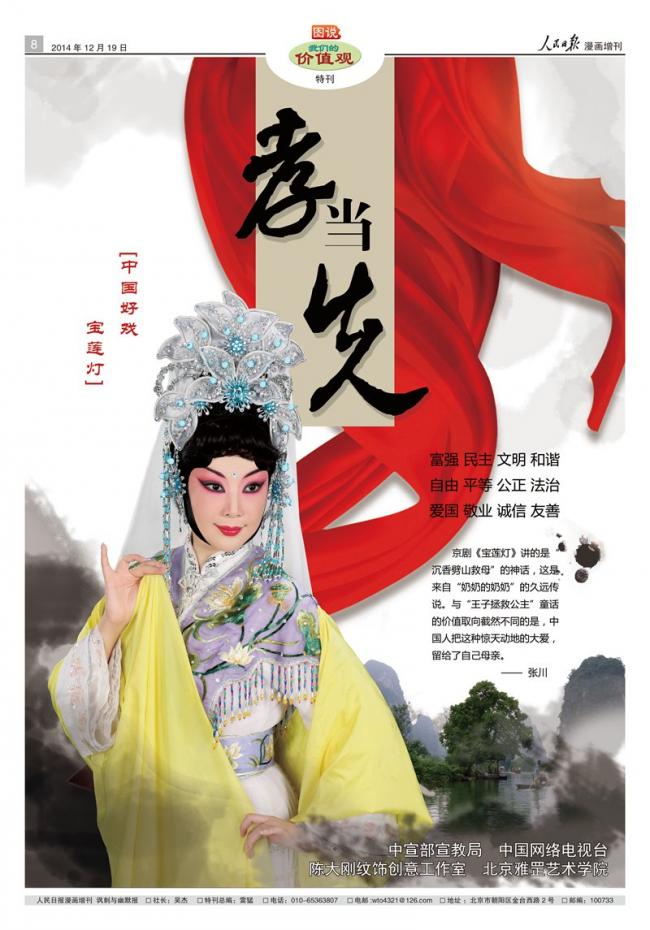 国内街头最大的变化:政府的宣传画增多 二 我读了这二十四字的价值观,很震撼。因为这二十四个字(富强、民主、文明、和谐、自由、平等、公正、法治、爱国、敬业、诚信、友善),几乎涵盖了人类社会文明发展的所有精华。比如我们海外大多数华人包括民运活动家们鼓吹的民主、自由,目前的国内外宪政派们正倡导的公正、法治,晚清以来中国的仁人志士们喊出的时代强音:富强、文明的中国,还有当下国学大师们宣讲的诚信、友善与和谐……。总之,这二十四个字囊括了所有中国人乃至全球华人的心声:一个富强民主的中国,一个公平法治的社会,一群爱国敬业诚信友善的中国人! 当然,在激动之余,我也为执政党捏一把汗,这玩意能兑现吧?我们各级政府愿意逐步实现这些理念吗? 万一境外的敌对势力与境内的异己分子们利用这二十四个字来“打着红旗反红旗”,宣传部门与维稳部门的工作量会增大,维稳经费也可能暴增呀? 三 那么,如何理解这二十四个字,我除了在田间街头注意观察外,也花些时间在政府的网站上学习,反正在国内期间也上不了万维贝壳村这样的反动网站,就连平时使用的谷歌电邮也无法打开,索性铁心研读一下党和政府的方针政策。在中宣部、中央文明办主办的中国文明网上,我看到了对这二十四个字的详细解释: 社会主义核心价值观是社会主义核心价值体系的内核,体现社会主义核心价值体系的根本性质和基本特征,反映社会主义核心价值体系的丰富内涵和实践要求,是社会主义核心价值体系的高度凝练和集中表达。 社会主义核心价值观包含12个词,共24个字,分别从国家、社会、公民个人三个层面提出社会主义核心价值观的价值目标、价值取向和价值准则。 从国家层面,我们追求一个富强的中国----不再受帝国主义和其他霸权主义的欺负;民主的中国----我的理解是在中国共产党的绝对领导下的社会主义民主中国;文明的中国----对外实行睦邻友好、文明协商处理外交事务;和谐的中国----对内人民安居乐业,人与人、人与政府和谐友好。 从社会层面,我们追求一个民众拥有广泛自由的社会,比如自由外出打工、求学与投资等,有相对的言论自由,比如有歌颂党和政府的自由,也有善意批评党和政府的自由—是否善意由各级党和政府决定;一个人人平等的社会,比如家家户户都有孩子上学、年轻人就业的平等,至于奥威尔所戏言的【有些动物比另一些动物更平等】的现象将会在改革中逐步消除;一个公正的社会:如果人与人之间有纠纷、个人与企业有争拗、民众与政府部门或者官员有冲突,都可以得到公正的解决,弱势的一方不用担心被强者欺负;一个法治的社会:所有问题,如果不能够由当事人双方协商解决,那么可以通过法律的途径裁决。 对于公民的要求,首先要爱国,爱国当然是我们现行的由党领导的社会主义祖国,但没有强令要求爱党,这个是看得见的进步;敬业,不用解释;诚信与友善,这个贯通古今、畅行中外,无论是宗教界还是世俗社会,这些都是统一的,是真正的【普世价值】。 但上面是我的臆想妄断,标准答案可以参见中央文明办给出的贝贝晶晶图说24字价值观。 四 如果从上面所了解的这二十四字的价值观,如果贯彻执行下去,想来也是对中华民族的文明进步大有裨益的。问题是,中国共产党是彻底的唯物主义者、是完全的功利主义者,将这些人类文明进步的口号纳入自己的口袋是为了掌握宣传上的主动,于是在各大街头宣传解释这些价值观的时候就出现了很多可以钩唤我们文革回忆的说道,比如【中国何以强,缘有共产党】【共产党好、百姓乐】【社会主义好、百子乐中华】这样一些“没有共产党就没有新中国”的现代版宣传画。 这类讴歌共产党的宣传画在北京街头四处可见,比如西苑公交枢纽,碍于摊点杂乱未能现场拍摄 值得注意的一个倾向是习总等新一代领导人似乎希望重新在中国传统文化中找到合适的元素来装点现行的价值观与中国梦。比如我在北京中关村一带看到海淀区政府贴出的一组廉政反贪宣传画中,廉洁干部案例全部取材于古代清官,从春秋到明清都有,比如子罕辞玉、清代的三尺巷等。奇怪的是没有一两个共产党干部,看样子党内清廉的干部严重缺货,习大大心忧啊。 海淀区的廉政宣传画—吴言摄,其他清官画因摊点杂乱未能拍摄效果好的照片 另外,揉入更多的孝道文化元素,比如我们小时候禁止的传统戏曲宝莲灯,也揉进了图解价值观的宣传中,甚至还看到有“百善孝为先”的宣传画,让我有些隔世之感,习大帝该不会哪天如古代的皇帝们一样【朕以孝治天下】吧?!