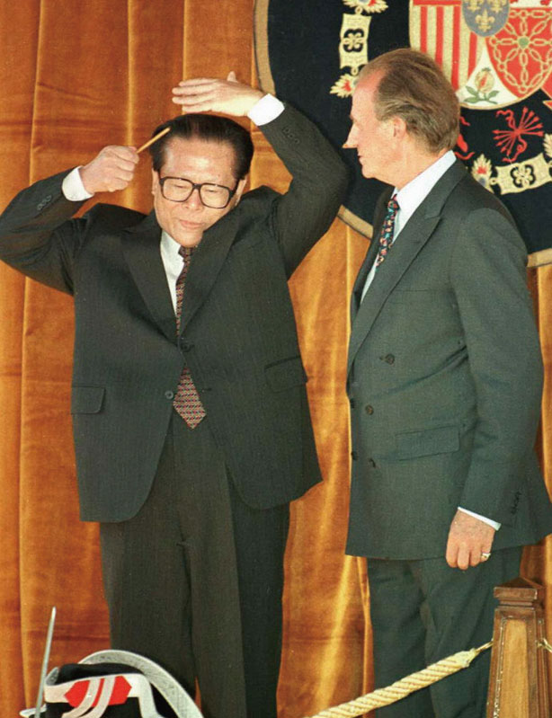 江泽民西班牙国王面前的梳头照片广为流传 可是江泽民有时候严格,却受到众人诟病。 周玉书,湖南攸县人,1933年生,平民子弟参军,通过一系列的磨练终于成为集团军军长、1990年为武警总队司令员,他枪法好又喜书法,是军队中难得的文武全才。1990年五月,中共中央召开常委会议,请时任武警司令员的周玉书列席会议。周将军早早就到人民大会堂等候,偏巧里面有个书画展,这位酷爱书法的儒将进去看看,谁知陶醉在书法作品中忘记了开会时间,迟到一刻钟,这是那天中常委会唯一迟到的,而且来自军方。这就给新一届的中央常委们很大的尴尬,首当其中自然是江总书记啦。会后并没有什么处罚,周玉书的仕途后来从少将也晋升到中将退休,但军队中却一直谣传江泽民会后勃然大怒,认为是军队的实权派不尊重他,故意指使周玉书迟到的,可怜周玉书本来是上将之才,江泽民公报私仇等等。其实周玉书一直很懊悔这次迟到,他也从不对外申辩,朋友间提到此事就一个劲唠叨对不起总书记、对不起政治局常委们……
