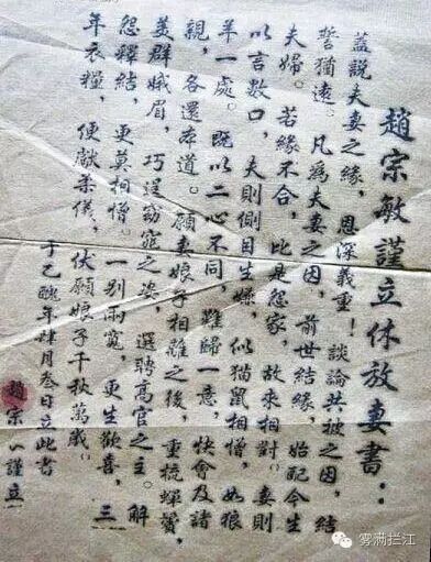 1900年,敦煌莫高窟出土一批唐代文献,里边保存着不少唐人的"放妻书"(离婚证书),基本内容如下:
