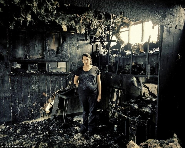 图中的这位女子名叫凯特,她和丈夫孩子居住在临时拖车里。由于常年遭受丈夫虐待,她不得不把孩子送去和母亲一起生活。在一次意外中,凯特一家居住的 拖车失火,大火将其仅有的财产全部烧毁。美国联邦紧急事务管理局曾大量出售拖车给贫困人口,以此解决房屋短缺问题,此举曾多次遭美国社会谴责,认为存在严 重的安全隐患。