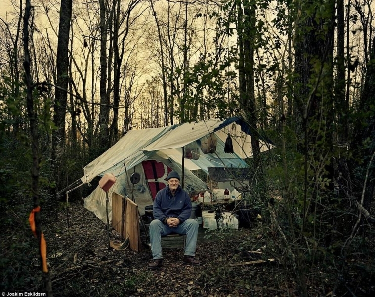 图中的这位老人名叫特里,他目前和女友居住在佐治亚州郊区帐篷里。特里说他和女友在这里居住感到十分“平静安定”,比之前在城市中和其他无家可归的人们住在一起好多了。