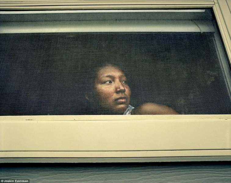 摄影师埃斯基尔森说,在拍摄过程中,几乎每一位受访者在谈话间都会忍不住哭泣,“很多时候看到他们这么难过我也很难面对,似乎任何人都有可能遭受他 们的苦难。” 图中的这个姑娘和家人居住在南达科他州,是当地原住民民族拉科塔族人。目前她希望得到篮球奖学金,以此改变她和家人的命运。