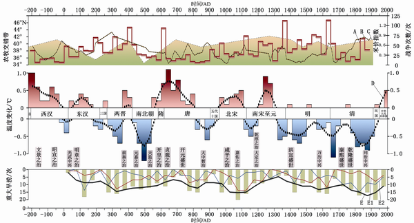 下面将中国历史时期分10个阶段,说说气候变迁对中国历史产生的影响,上面论文中说到的会简略些。最后有张秦汉以来中国气候变化图,是中科院地理所《地球科学进展》月刊所载,注释和原图链接附后。