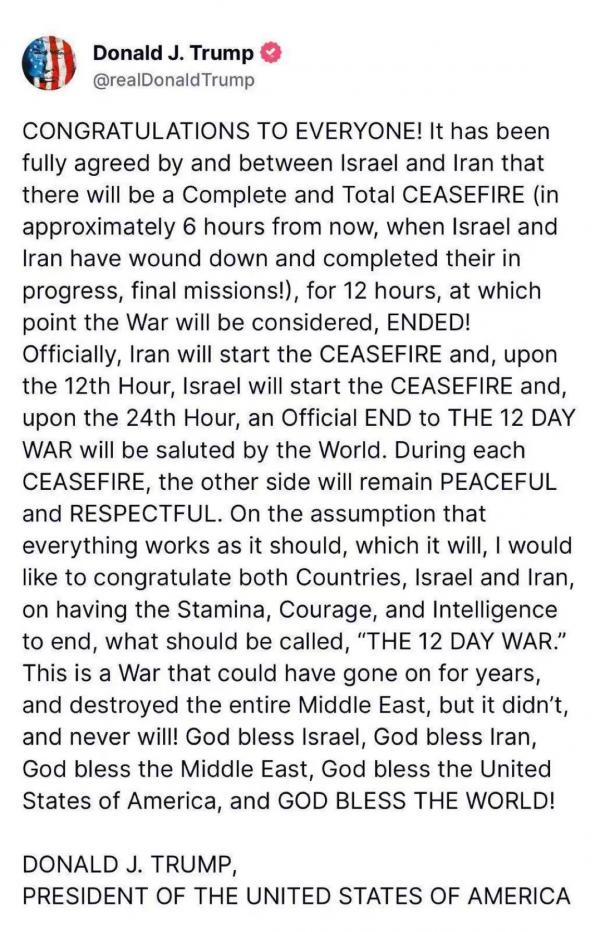 | 十二日战争即将落幕,美以联手奏凯,伊朗全面溃败 |