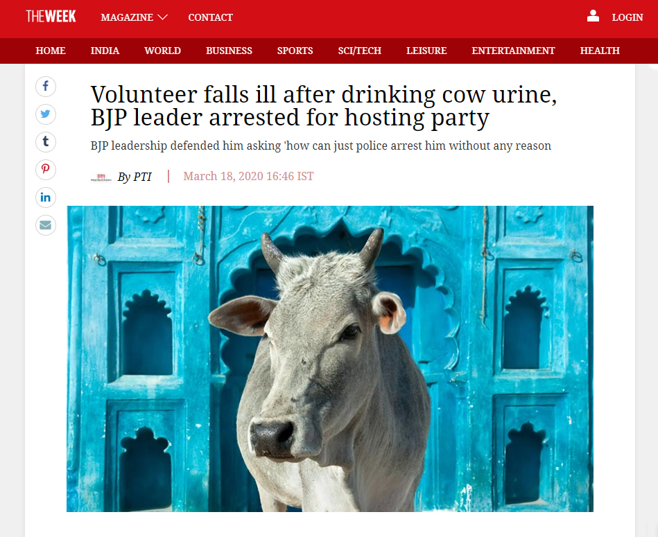 https://www.theweek.in/news/india/2020/03/18/volunteer-falls-ill-after-drinking-cow-urine-bjp-leader-arrested-for-hosting-party.html