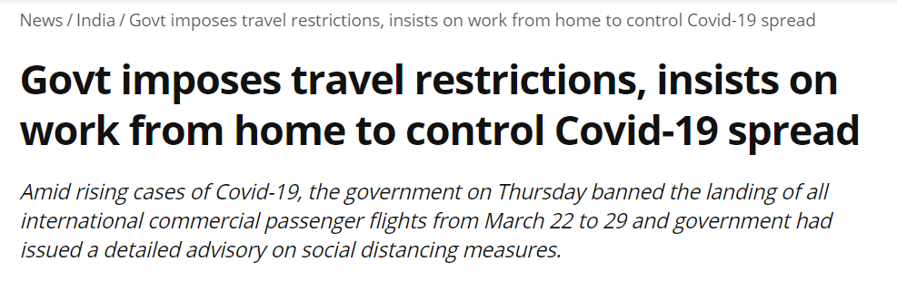 面对疫情的蔓延,印度政府也在逐渐加强防控措施。为了遏制输入性病例的增长,印度在一月底已经开始加强入境筛查,筛选4万余待检测人员;印度民航总局也公告,3月22日至29日,国际商业航班不得在印度领土降落。
