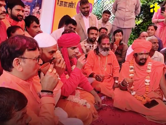 印度教大斋会主席马哈拉杰于3月14日在新德里举办了一场盛大的“牛尿(Gaumutra)派对”。