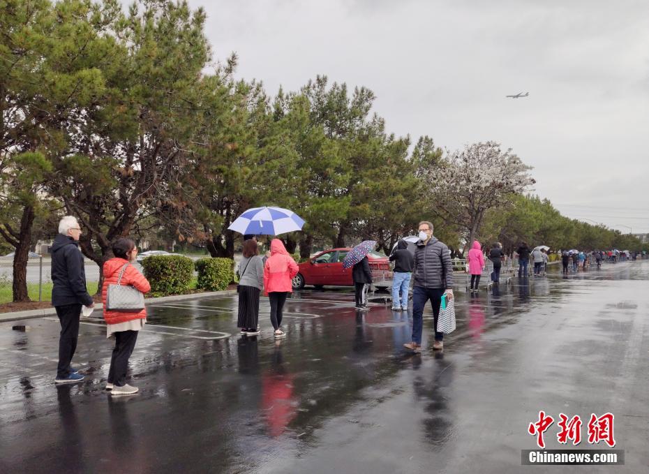 美国旧金山湾区民众采购物资:冒雨排长队2020年03月30日 08:48:10