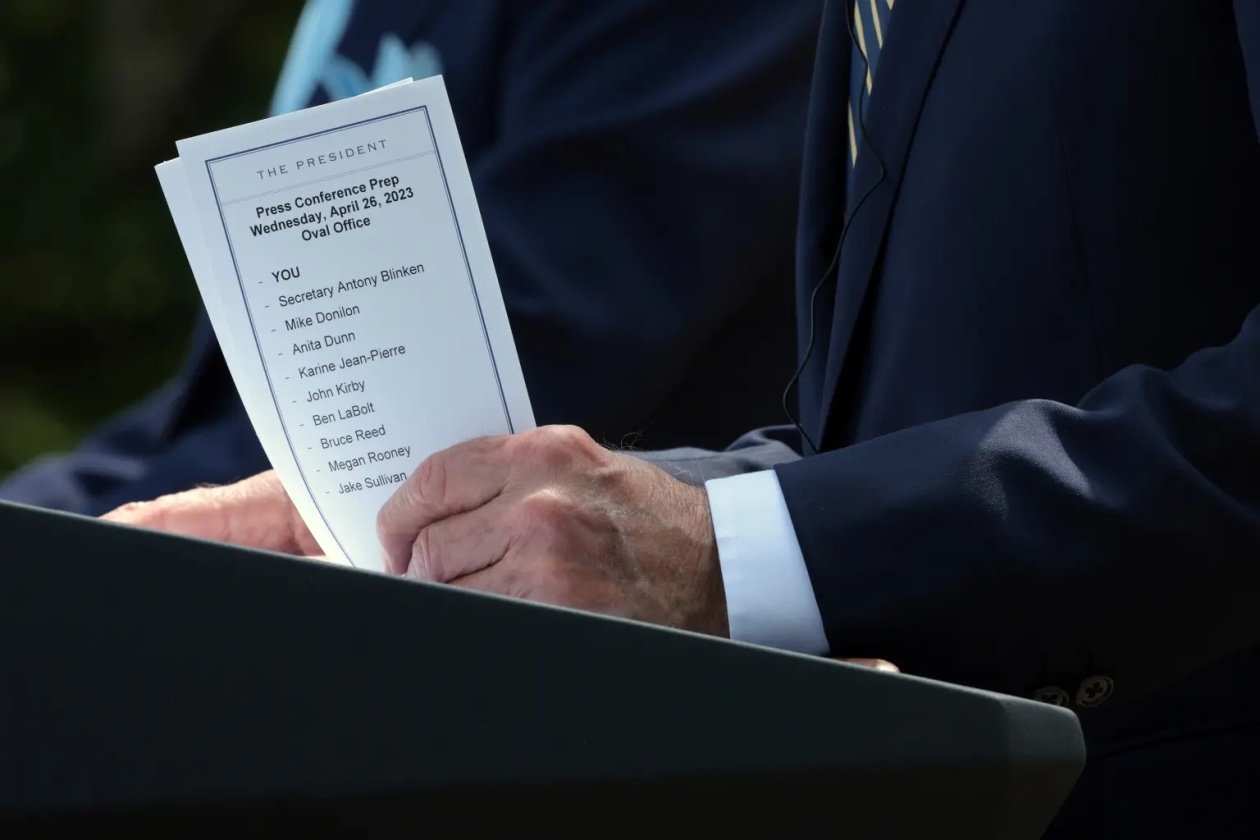 | 美媒发现:与尹锡悦联合记者会上,拜登又被拍到拿“小抄” zt |
