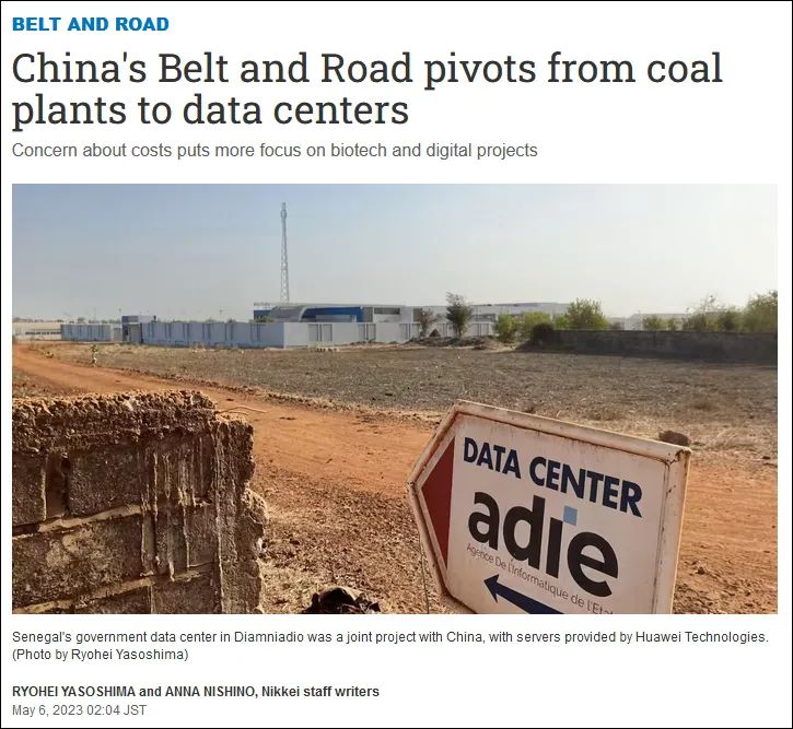 《日本经济新闻》报道截图 “与‘一带一路’相关的海外投资正在转型。”基于英国《金融时报》旗下外国直接投资(FDI)监测系统的数据,《日本经济新闻》发现,2022年中国在信息技术、通信和电子元件方面对外绿地投资(即在海外新开子公司参与项目)总额为176亿美元,是2013年“一带一路”刚启动时的六倍。 报道提到,这意味着中国在海外投资中有更多像塞内加尔国家数据中心这样的项目。该中心坐落于距离塞首都达喀尔以东约30公里的新城迪亚姆尼亚久,由塞国家信息局管理、陆军负责警备。作为中塞合作项目,该中心由中方提供贷款融资,并采用华为公司的设备和技术支持,于2021年完成建设。 这代表塞内加尔将首次拥有自己的数字数据存储结构框架。塞国家信息局负责人谢赫·巴库姆(Cheikh Bakhoum)介绍说:“我们拿回了原本寄存在欧美企业服务器上的数据,在削减成本的同时收复了‘数据主权’。” 除此之外,塞内加尔还在中国资助下建设起了海底电缆、城市监控摄像头。巴库姆表示,摄像头监控数据也将在数据中心“使用专用软件进行分析”。日本芝浦工业大学副教授持永大指出,中国从2000年代末开始出口国内开发的数字基础设施,“随着华为扩大其海外投资,这一趋势也自2013年起不断加强”。