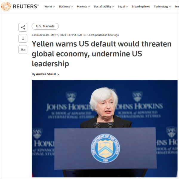 美财长暴露了:应限制中国这方面,不要破坏中国那方面►文观察者网 熊超然 债务违约危机悬而未决,这已成为美国财政部长耶伦近期紧盯的头等议题。当地时间5月11日,耶伦再次敦促国会提高31.4万亿美元的联邦债务上限,以避免出现前所未有的债务违约,否则这将引发全球经济下滑,并可能削弱美国在全球经济中的领导地位。 据路透社报道,耶伦当天是在日本与七国集团(G7)以及印度、印度尼西亚和巴西等国财长举行会议前的新闻发布会上,发表这一系列日益措辞严厉的警告的。当地时间5月1日,耶伦早已致信众议院议长麦卡锡等国会领导人,警告美国政府最早或将在6月1日突破债务上限,出现债务违约,这比此前预测的日期要提早数周。 新闻发布会上,耶伦还谈及她此次参加G7财长会议的多个优先事项。她表示,G7国家将继续努力减轻地缘战略风险,反对经济胁迫,并引用了上个月的一次演讲内容,声称“美国将反击中国主导外国竞争对手的行为”。彭博社称,谈及中国,耶伦还认为,美国针对中国的限制“应当侧重于国家安全”,而非“破坏中国的经济竞争力”。 路透社报道截图“(债务)违约将威胁到我们过去几年在(新冠疫情)大流行复苏中努力取得的成果。这将引发全球经济衰退,使我们进一步倒退。”耶伦补充说:“这也有可能破坏美国的全球经济领导地位,并让人质疑我们捍卫国家安全利益的能力。” 耶伦称,共和党人在这一问题上的边缘政策相当于“人为给自己制造危机”,仅仅是债务违约这一威胁,就可能导致美国政府的信用评级被下调,就像2011年发生“债务上限之争”那样。 耶伦表示,债务违约还可能推高抵押贷款、汽车付款和信用卡的利率,并指出,今年6月1日左右到期的债务利率已经飙升。 耶伦在日本参加G7财长会议 图自日媒路透社指出,与大多数发达国家不同,美国设定了债务上限,由于政府的入不敷出,国会立法者必须定期提高这一债务上限。 而当前,对于一触即发的债务违约,拜登等民主党人认为,国会有宪法义务,应当无条件提高债务上限,因为其反映的是政府先前开支情况,但控制着国会众议院的共和党人坚持要拜登先同意削减政府开支,再谈上限问题。 当地时间5月9日,白宫新闻秘书让-皮埃尔也坚称,此次危机是共和党人“人为制造的”,并反复强调国会应“做好自己的工作”。她还强扯中俄,声称若出现违约,这将是众议院共和党亲手“送给中国、俄罗斯和其他竞争对手的礼物”;并援引美国国家情报总监海恩斯此前表态指出,违约会导致美元计价市场波动。 5月9日晚些时候,拜登在白宫与参众两院两党领袖就违约风险问题进行了长达一个小时的讨论。彭博社称,投资者正密切关注拜登与国会两党领袖之间的会议。但据美联社报道,此次讨论没有取得任何突破。 拜登5月9日就政府债务违约风险邀请国会负责人到白宫开会讨论 图自CNN同日,美国财政部借款问题外部委员会负责人、高盛集团全球融资部门联席主管贝丝·哈马克警告说,“美元正面临真正的危险”,拜登政府和国会应尽快解决僵局。前拜登政府经济顾问、PGIM固定收益公司首席全球经济学家达利普·辛格日前也说,白宫和国会的争论会产生“长期的创伤影响”,将美元“置于危险之中”。 据报道,在11日的新闻发布会上,耶伦也透露了她在此次G7财长会议上的优先事项,包括加强全球经济和降低通货膨胀的个人和联合行动,加倍承诺帮助乌克兰对抗俄罗斯,以及提高经济弹性的长期努力。 尽管存在下行风险,但耶伦声称,全球经济状况仍好于许多人六个月前的预测,大多数G7国家的年度总体通胀率有所下降,经济增长预期也有所改善。耶伦表示,在近期三家地区性银行接连倒闭后,美国已采取行动增强对其银行体系的信心,并制定了投资基础设施、替代能源和半导体芯片的立法。 耶伦表示,她还将与G7财长合作,通过促进关键商品的国内生产和帮助发展中国家扩大在全球供应链中的份额,以建立更大的长期经济弹性。她说,这意味着帮助这些国家摆脱“单纯的采掘业,转向为国内经济和就业提供更大支持的活动”。 不过,耶伦没有透露具体细节,但她表示,这项工作将建立在G7全球基础设施与投资伙伴关系(Partnership for Global Infrastructure and Investment)正在进行的6000亿美元投资的基础之上,该伙伴关系旨在动员私人资本投资发展中国家的基础设施项目。 |