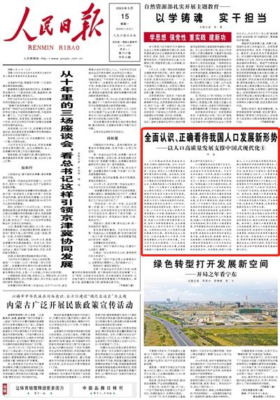 | 人民日报仲音:全面认识、正确看待我国人口发展新形势 zt |