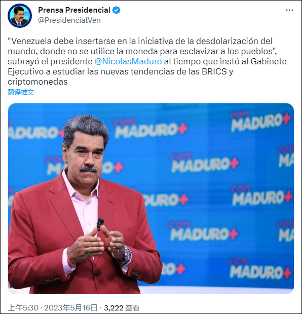 | 马杜罗:委内瑞拉正“去美元化”,货币不应被用来奴役人民 zt |