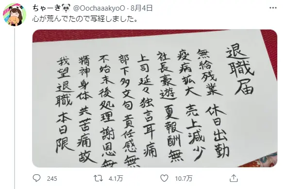 在曾经的日本,过快的离职和跳槽,可以说是职场新人的大忌。 一个新员工进了的公司,至少先要在一个基层岗位上苦熬三年,然后再去谈别的。如若不然,就会被人才市场扣上“第二新卒”的帽子,再难找到新工作。 但怪物新人完全不在乎这些。 在推特上,有个公司的管理者吐槽,说公司的新职员周二办理入职,周四就递了辞呈,一共都没在工位上坐满24小时。 还有社畜说,公司原本招了24个新人,结果干了一天活儿后就只剩下了18个,也不知道这帮后辈是来上班的,还是来参加大逃杀吃鸡的。 根据东京商工会议所,在今年对新日本入职人群所做的调查,有20%的年轻人表示如果有机会,他们会立刻换工作。 而在10年前,有同样想法的年轻人,只占调查总人数的8.5%。 在以前,日本人离职,大多要经历一个相对复杂且漫长的过程,而一封优秀的辞职信,也能间接体现出这名打工者的素质。