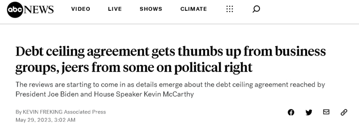 美国的这个危机解除了?不,还没有当地时间5月28日,美国民主党籍总统拜登宣布,他已经就美国政府的债务上限问题与国会众议院共和党籍的议长麦卡锡达成了一个“最终协议”。 不过,尽管这对于让美国政府避免陷入即将到来的债务违约来说,算是个很大的好消息,但从多家美国媒体的报道来看,这个迫使拜登不得不取消先前G7峰会的部分行程,甚至放了几名外国领导人“鸽子”的大危机,并不算完全解除。 美联社就指出,这是因为拜登和麦卡锡达成的这个协议,还需要在美国国会的众议院和参议院获得通过,并且还得赶在6月5日之前,才能真正算危机解除。否则,美国政府仍然可能发生债务违约。 ![]() 但从目前来看,尽管代表的民主党拜登和代表共和党的麦卡锡都宣布他们在协议中取得了“胜利”,但双方做出的一些让步仍在各自的党派内存在一些分歧,比如民主党内的左翼和共和党的硬核右翼势力。 美国广播公司的报道进一步介绍说,尽管麦卡锡通过协议让拜登同意削减联邦政府的开支,但比他更激进的共和党议员认为这种程度远远不够,民主党方面则认为拜登对于共和党做出的让步会导致一些美国的困难群体得不到帮助。 ![]() 不过,拜登和麦卡锡似乎并不担忧这些党内的争议,都对媒体表达了协议能在国会获得通过的信心。 美联社称,目前两人都在做各自党内的工作。其中拜登表示,尽管达成协议需要做出一些让步,而这意味着不是所有人都会得到自己想要的,“但这是执政者需要承担的责任”。 当地时间周三,众议院将会对这一协议进行投票。 |