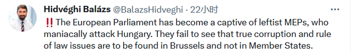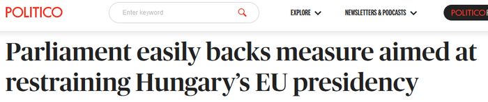 史无前例被剥夺资格!匈牙利震怒(观察者网讯)据“政客新闻网”欧洲版(politico.eu)当地时间1日报道,欧洲议会当天压倒性通过了一项决议草案,旨在阻挠匈牙利在2024年下半年接任欧盟轮值主席国职务,不过这项决议并没有强制约束力。 欧洲新闻网(Euronews)指出,欧洲议会此举“史无前例”,让匈牙利方面大为恼火。匈牙利总理首席政治顾问巴拉兹·欧尔班(Balázs Orbán)在推特对此抨击道:“匈牙利因其反战立场而再次受到布鲁塞尔的勒索。” 路透社还提到,尽管在对俄制裁上立场不同,但波兰总理莫拉维茨基亦发声,谴责欧洲议会此举破坏了欧盟的管理方式,并称如此作为将使欧盟“通往深渊”。 截图自“政客新闻网”欧洲版根据2016年欧盟各国政府制定的计划,匈牙利将在2024年7月至12月期间,接替西班牙和比利时担任欧盟轮值主席国。 但据“政客新闻网”报道,5月底,包括欧洲人民党、欧洲社会党等在内的5个欧洲议会党团提交了一份决议草案,认为匈牙利不遵守欧盟法律和价值观,质疑该国能否履行欧盟轮值主席国的工作。 这一决议草案于6月1日提交欧洲议会表决,获得压倒性多数通过,投票结果分别是赞成票442、反对票144、弃权票33。决议敦促欧盟委员会和欧盟理事会剥夺匈牙利担任欧盟理事会轮值主席的资格,或尽快寻找其他解决方案采取有关措施,不过报告中没有提及更进一步的细节内容。 “欧洲新闻网”指出,欧洲议会此举在整个欧洲历史上都没有先例。法国《回声报》表示,截至目前,只有英国在2017年放弃了轮值主席国资格,但当时英国已经公投决定“脱欧”。 匈牙利欧洲议会议员希德维吉·巴拉兹(Hidvéghi Balázs)对此在推特上大加斥责称,“欧洲化和法治的拥护者现在正试图将轮值主席国从匈牙利手中夺走,然而这么做的人才是公然违反欧盟法律和条约的人。” 他提到,匈牙利之所以遭到如此“疯狂的攻击”,是因为欧洲议会中有人不喜欢匈牙利坚持自己的路线,并且在提案错误或有害时敢于对布鲁塞尔说“不”。 ![]() 匈牙利与欧盟的矛盾由来已久,双方在法治改革、媒体自由和LGBTQ权利等多个问题上存在分歧。为此,欧盟去年还冻结了本应拨给匈牙利的近220亿欧元资金和低息贷款。 除此以外,匈牙利在俄乌问题上的立场也引发欧盟内部诸多不满。路透社指出,匈牙利一直拒绝在军事上援助基辅,批评欧盟对莫斯科的制裁,匈牙利总理欧尔班还一直保持着与克里姆林宫的联系。 投票结果出炉后,匈牙利总理首席政治顾问巴拉兹·欧尔班(Balázs Orbán)也在推特上抨击称:“匈牙利因其反战立场而再次受到布鲁塞尔的勒索。”他同时指出,“敲诈”匈牙利是行不通的,因为剥夺匈牙利欧盟轮值主席国的资格超出了欧盟的能力范围。 早些时候,匈牙利司法部部长尤迪特·沃尔高发声,谴责这项决议草案为一项“反匈牙利计划”,“有一点需要明确,担任欧盟轮值主席不是一项权利,而是一项义务。我们承诺要做的事情,就会忠实履行。没有人能够把它从我们这里夺走。” 匈牙利总理府也表示,禁止匈牙利担任欧盟轮值主席国“在法律上是没有可能性的”。 ![]() “政客新闻网”指出,这项决议并不具有强制性约束力,仅以此无法取消匈牙利担任欧盟轮值主席国的资格。从法律层面讲,这项决议的具体实施也缺乏法律效力,决议表现出的更多是象征意义。 该决议的主要发起者也承认,目前没有明显的法律途径能阻止匈牙利担任轮值主席国,但有议员威胁会在匈牙利担任主席国期间将合作限度降到最低。 另据路透社报道,尽管因在乌克兰战争上持不同立场导致两国关系降温,不过波兰总理莫拉维茨基公开发声,谴责欧洲议会支持的这项决议。 他在摩尔多瓦的一次会议上批评此举明显违反了欧洲最重要的规则,“用这种方式破坏整个欧盟的管理方式,这不仅将变成一条无路可走的路,更是一条通往深渊的路。” |