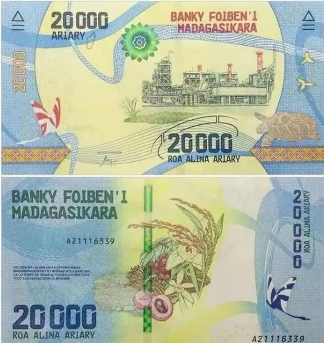 2017年,马达加斯加 最高货币2万的纸币上 印上了袁隆平的杂交水稻 以表对中国援助的感激