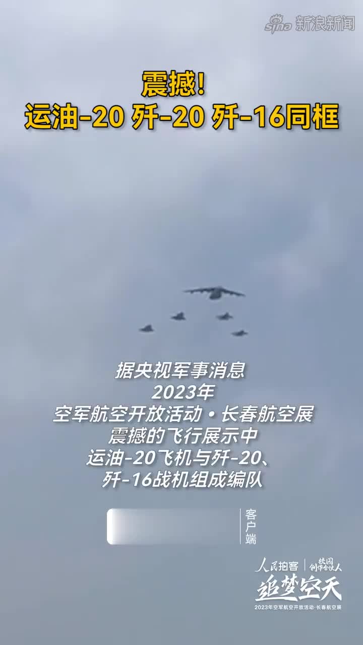 长春航空展首日有何看点?看空军双“20”列阵长空据央视新闻消息,今天(7月26日)是2023空军航空开放活动·长春航空展的首日。今天上午,空军运油-20空中加油机与多架歼-20系列首次同框出现,展现中国空军战略转型取得的崭新成就。 军事专家 王明志:我们可以看到运油-20在四架歼-20的护航之下进入展示现场。 ![]() 运油-20继续向前飞行,四架歼-20上升左转,完成了与运油-20的编队脱离。 ![]() 现在歼-20采取了尾后密集队形,进入了空中展示现场。 总台央视记者 刘冠青:我们知道尾后密集队形是空军在飞行中的一种礼仪性队形。 ![]() 军事专家 王明志:今天是2023年空军开放活动和长春航展的第一天,是一个非常重要的时刻,所以歼-20在进入现场时用了最高的礼仪向现场的嘉宾和观众表达敬意,这是一种飞行员表达敬意的特殊形式。 ![]()