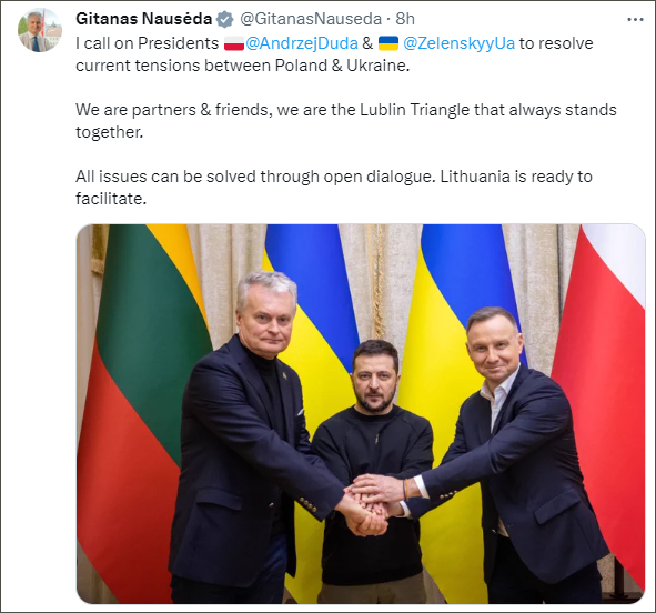 波乌“闹掰”,立陶宛凑了上来(观察者网讯)援乌“排头兵”波兰近来的立场转变引发关注。在波兰宣布将暂停向乌克兰供应武器后,美国国防部9月21日回应说,这属于波兰做出的“主权决定”,他还强调波兰已向乌提供了很多援助。同日,立陶宛总统瑙塞达表态称,立陶宛愿意为波乌两国开展对话提供便利。 据美国有线电视新闻网(CNN)报道,美国国防部发言人帕特里克·莱德(Patrick Ryder)在21日的记者会上表示,波兰决定暂停向乌克兰提供武器属于“主权决定”。“我们一直在说,无论对哪个国家而言,决定(向乌克兰)提供多大程度的支持都是其主权决定。” 美国国防部发言人莱德/CNN莱德没有透露波兰的决定是否会导致其他国家需要向乌克兰提供更多援助,但他强调了波兰已经提供了很多援助。 “在向乌克兰提供安全援助方面,波兰一直是领先的国家之一。”他说,“不仅是安全援助,(波兰)还为前往该国的超过一百万流离失所的乌克兰人提供了大量的人道主义援助和支持。” 同一天,立陶宛总统瑙塞达在社交媒体X发文,呼吁波乌总统解决两国当前的紧张局势,称愿意为促进对话提供帮助。 “我们是合作伙伴和朋友,我们是始终团结在一起的‘卢布林三角’。”他称,“所有问题都可以通过公开对话得到解决。立陶宛已准备好为此提供便利。”今年1月,立陶宛、波兰和乌克兰签署了《卢布林三角宣言》,承诺加强为乌克兰提供军事、经济、后勤等方面的支持,并推动乌克兰加入欧盟和北约。 立陶宛总统瑙塞达在X上发文劝和,还发布了三国领导人的合影受粮食争端升级影响,波兰和乌克兰关系近期急转直下。 9月20日,波兰总理莫拉维茨基接受当地媒体采访时宣布,波兰将暂停向乌克兰提供武器。在被问及波兰是否会继续支持乌克兰时,莫拉维茨基回应说,“我们不会再向乌克兰输送武器,因为我们正在用更现代化的武器武装波兰军队。” 他补充说,波兰政府无意“拿乌克兰的安全冒险”,也不会干扰其他国家通过波兰东南部城市热舒夫的军事枢纽向乌克兰运送武器,波兰从武器过境运输中获得了经济利益。 彭博社称,波兰政府这一决定很可能与两国之间的粮食争端有关,波兰多次指责乌克兰农产品的滞留扰乱当地农产品市场,并宣布将继续执行对乌克兰农产品的禁令。相关举动引发了乌克兰方面强烈不满。乌农业部门表示,将就波兰、匈牙利和斯洛伐克的农产品禁令向世贸组织提起诉讼。 此前,波兰是北约里援乌军火最为积极的国家之一。CNN在21日发表的评论文章里对此评价,波兰停止供武的决定堪称一次“重大逆转”,在乌克兰对俄罗斯发起反攻之际,有可能对欧盟与乌克兰的战略关系造成颠覆性影响 。 波兰空军米格29战机/欧洲新闻台文章提到,今年春天,波兰成为第一个向乌克兰提供战斗机的北约国家,比美国还早了几个月。美国直到8月才同意批准向乌克兰援助F-16战斗机。此外,波兰还向乌克兰提供了超过200辆苏式坦克,而且大多数西方军事装备和物资都是通过波兰领土抵达乌克兰的。 CNN注意到,在波乌紧张局势加剧之际,波兰10月将迎来议会选举,而执政党法律公正党正在争取第三个独立执政期。俄乌冲突爆发后,该党因移民和农业问题遭到反对派攻击,被指责为了乌克兰而放弃了国内更重要的优先事项。正是在这样的背景下,法律公正党近几个月来减弱了对乌克兰的支持力度。 CNN认为,从乌克兰的角度来看,他们可能会担心波兰停止供武将在整个欧洲产生反响。“乌克兰及其盟国会担心,如果波兰对未来援助武器采取了新的立场,其他犹豫不决的欧洲国家也会感受到提供援助的压力。” |