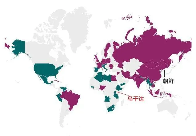 朝鲜为什么撤销驻乌干达大使馆?作者 / 林海东 先说两件题外事。 第一件。当地时间10月25日,联合国安理会再次就巴以局势召开紧急会议,表决美、俄分别提出的决议草案。两份草案均未获通过。至此,在过去10天里,已经有四份相关决议草案未获通过。联合国官网当天以“安理会再陷分裂”为题,发布了上述消息。 第二件。朝鲜外务省发言人10月26日就“以色列空袭巴勒斯坦医院”事件发表“答朝中社记者问”,明确表示医院惨案系“以色列空袭”,是“战争犯罪、反人道犯罪”,但在谴责以色列之外,像10·23朝中社评论、10·23赵哲洙谈话一样,再次把矛头指向美国,指责美国是幕后黑手。这里有两个需要注意的点——其一,这是医院惨案发生数日后,朝鲜首次对事件明确表态,且就事论事,并未将表态范围进一步扩展,但定性明确,即“以色列干的”;其二,未采取“发言人谈话”的主动形式,而是采用“答记者问”的被动形式,继续保留一定的转圜空间。 言归正传。 昨天我们简单说了朝鲜撤销驻乌干达大使馆的事情,有朋友提出了一些问题,今天做个一总回答。 打开朝中社官网,输入“乌干达”进行搜索,会发现很多与乌干达相关的新闻消息,这些消息主要集中在朝乌友好方面,包括官方层面的彼此致电、乌干达各界人士对朝鲜道路的讨论及伟人称颂等等。看上去很热闹,但实际上都是鸡毛蒜皮,无足轻重,并不能显示朝乌关系的真实面貌。 朝鲜与非洲国家的关系,是上个世纪朝鲜“亚非拉人民大团结”外交的直接结果与当代延续,将朝鲜与非洲国家联系在一起的,首先是“反美反帝反殖民”,接着是各自利益。众所周知,上世纪六十至八十年代,朝鲜算是个欣欣向荣的国家,各方面条件比非洲兄弟强太多,支援非洲、帮助非洲兄弟摆脱殖民统治、发展经济是朝鲜的“天降大任”之一。那时候,非洲兄弟到平壤见金日成,颇有些“朝圣”的意思,这在朝鲜相关的纪录片中有很多反映。以现任乌干达总统穆塞韦尼为例,自1986年担任总统以来,先后于1987、1990和1992年访问过朝鲜,会见过金日成,而且还会说几句朝鲜话;2013年,穆塞韦尼访问韩国的时候,他说的朝鲜话让韩国官员们感到惊讶,穆塞韦尼告诉他们,说他的朝鲜语是跟金日成学的。 大家经常说朝鲜是个“封闭、孤立”的国家,外界也用“神秘的隐士之国”来形容它,其实并不尽然。目前,朝鲜与世界上160多个国家保持外交关系,向40多个国家派驻使馆,也有20多个国家(含国际组织)在平壤设有使馆或代表处、办事处;顺便提一下,这里是所以使用虚数,是因为情况有些动态变化。朝鲜与各建交国的使团派驻大致情况如下图: