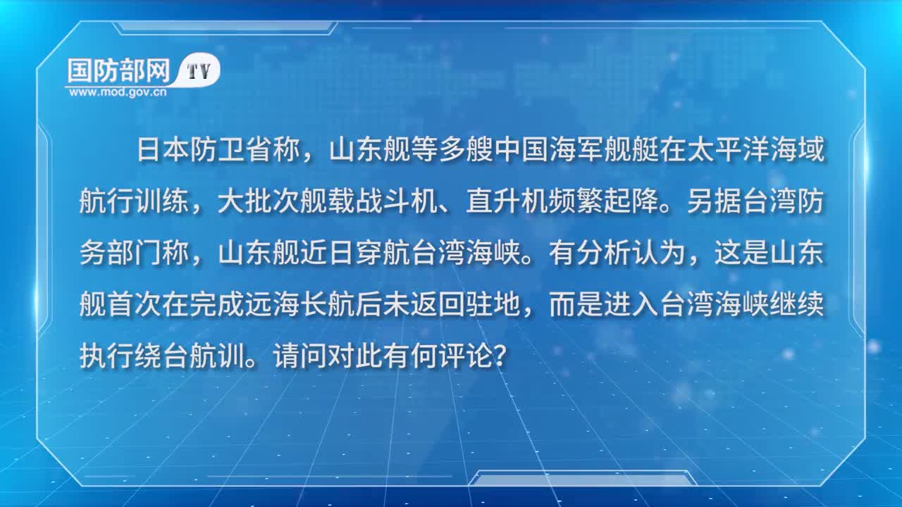 国防部:山东舰编队远海训练提高体系作战能力11月16日,国防部新闻局副局长、国防部新闻发言人张晓刚大校就近期涉军问题发布消息。 记者:日本防卫省称,山东舰等多艘中国海军舰艇在太平洋海域航行训练,大批次舰载战斗机、直升机频繁起降。另据台湾防务部门称,山东舰近日穿航台湾海峡。有分析认为,这是山东舰首次在完成远海长航后未返回驻地,而是进入台湾海峡继续执行绕台航训。请问对此有何评论? 张晓刚:近期,中国人民解放军海军组织山东舰编队赴相关海域进行训练,旨在锤炼提高航母编队体系作战能力,提升官兵技战术水平,进一步增强维护国家主权、安全、发展利益的能力。需要指出的是,这是根据年度训练计划作出的例行性安排,符合国际法和国际实践,中国军队将常态组织类似演训活动。 |