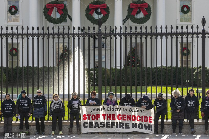 拜登警告以色列:全球舆论可一夜之间反转(观察者网讯)综合路透社、《以色列时报》12日报道,当地时间周一晚,美国总统拜登在白宫犹太教光明节招待会上“加倍”重申了他对以色列的支持,同时又暗示自己与以色列总理内塔尼亚胡之间在过去和现在都存在分歧。 报道称,拜登还对参加活动的犹太人表示,尽管双方存在分歧,但美国对以色列的承诺是“不可动摇”的,对以援助将持续到哈马斯被击溃为止,不过以色列领导层需要小心“整个世界的舆论可能在一夜之间倾覆”。 当地时间12月11日,美国总统拜登在华盛顿白宫东厅举行的光明节招待会上讲话 图自视觉中国据报道,当地时间周一晚,拜登在白宫东厅向包括大屠杀幸存者、参议院多数党领袖查克·舒默和二十多名国会议员在内的大约800名听众发表了讲话。 《以色列时报》报道称,在美国要求以色列采取更多措施保护加沙平民的压力下,拜登在招待会上说起,他并不总是同意以总理内塔尼亚胡的观点。 他回忆了双方几十年的交情,提到内塔尼亚胡的办公桌上放着一张两人在1973年会面时的合影,“我认识比比(Bibi,内塔尼亚胡的昵称)已经51年了。合影的时候,他还是以色列外交部门的一名年轻成员,而我也只是一名32岁的参议员。” “我当时在这张照片上写道:‘比比,我爱你,但我不同意你说的一些话。’”拜登补充道,“现在也是这样。” 他随后又强调,尽管美国与以色列领导人存在分歧,但以色列正处于“艰难时刻”,美国承诺将坚定不移地支持以色列,美国对犹太人的安全、以色列的安全,以及以色列作为一个独立犹太国家存在的权利是“不可动摇”的。 “各位,如果没有以色列,世界上就没有一个犹太人是安全的。” 拜登在招待会上还承诺,美国对以色列的援助将一直持续到击溃哈马斯为止,不过他同时警告以色列,公众舆论可能会造成严重影响。“我们必须小心,全球舆论可能在一夜之间改变,我们不能让这种事发生。” 他最后还表示,美国将继续努力解救仍被关押在加沙的人质,加快向巴勒斯坦人提供人道主义援助,并向以色列方面持续强调保护平民安全的重要性。 路透社分析称,拜登没有详细说明他与内塔尼亚胡两人之间存在哪些分歧,但以最近几周的情况来看,美以分歧集中在以色列军方对哈马斯发起的军事报复行动和对待巴勒斯坦平民等问题上,拜登政府因支持以色列而饱受国内外批评。 与此同时,谴责拜登的声浪并未停歇。当天早些时候,“犹太和平之声”的抗议人士身着“不要以我的名义”字样的T恤聚集在白宫外,用铁链把自己锁在白宫的围栏上,高呼:“拜登,拜登,选边站!选择停火而不是种族灭绝!” 在被警方带走之前,抗议者们还宣读了在加沙遇害的人员名单。抗议活动组织者埃斯特·法默(Esther Farmer)表示,他们是特意选在白宫庆祝光明节的这天举行抗议活动。 “作为年长的犹太人,我们知道种族灭绝是什么样子,我们知道种族灭绝是什么感觉。这是可怕的,是毁灭性的。有时候,早上起床看到这一切会很难受,而这一切都是以犹太人的名义进行的。因此,我们要在这里说,不要以我们的名义。”她说。 当地时间12月11日,“犹太和平之声”的活动人士聚集在白宫外的围栏上呼吁停火 图自视觉中国自本轮巴以冲突以来,加沙地带已经有超17700名巴勒斯坦人死亡。当地时间12月7日,布林肯在新闻发布会上对以色列提出“最强烈的公开批评”,称以色列实际造成的伤亡与其所谓“保护平民”的意图之间存在明显差距。他强调,以色列依然需要重视对平民的保护。 然而,在“批评”以色列的同时,美国政府并没有放弃对以色列提供军事援助的想法,并在12月8日的安理会紧急会议上,一票否决了加沙地带人道主义停火决议草案。 随着加沙地带平民死伤不断增加,以色列和美国面临着越来越大的国际压力。日前,多家外媒援引消息称,美国国务卿布林肯曾告诉以方官员,由于平民死亡人数众多,美方希望以色列“在一个月内”,即1月初之前结束在加沙地带的军事行动。 当地时间12月10日,布林肯接受采访时回应称,军事行动结束的时间“由以色列决定”。对于加沙人道主义危机持续加剧,布林肯辩称,以色列已经采取多项措施“保护平民”,但“意图和结果之间存在差距”。 白宫首席副国家安全顾问乔恩·费纳和白宫国家安全委员会发言人亦回应称,美国尚未向以色列给出明确的最后期限,“这是以色列的军事行动,以色列人将决定他们的行动方向”。 |