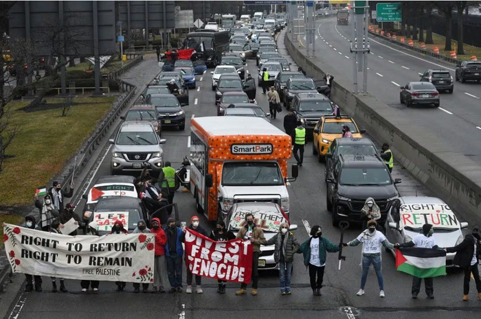 美国两大机场入口道路罕见一幕,62人被捕(观察者网讯)综合美联社和路透社报道,当地时间12月27日上午,美国的巴勒斯坦支持者在该国最繁忙的两大机场——洛杉矶国际机场和纽约肯尼迪国际机场——举行抗议活动,一度封堵了通往机场的道路。警方拘捕了62人,其中纽约26人,洛杉矶36人。 示威者手持写有“解放巴勒斯坦”和“避免种族灭绝”等内容的标语牌,抗议以色列过去两个多月在加沙采取的军事行动。 ![]() 当地时间2023年12月27日,美国纽约,巴以冲突持续,亲巴勒斯坦示威者封锁通往肯尼迪国际机场的道路,部分示威者被警方拘捕。(图源:视觉中国) 巴以冲突持续,不满以色列在加沙地带军事行动的愤怒情绪在全世界蔓延,美国的巴勒斯坦支持者已连续多周举行示威活动。在密集空袭撕裂加沙地带的平安夜之后,抗议者又把示威地点瞄准了假期繁忙的美国两大机场。 美联社称,抗议活动让本就要应对假日出行高峰的两大机场周围交通一度陷入停滞。根据航班数量估计,当天会有21.5万名乘客和8.7万辆汽车前往洛杉矶国际机场。 在纽约,示威活动导致通往纽约肯尼迪国际机场的范威克高速公路的交通一度陷入停滞,约20分钟后道路才恢复通行。 抗议者举着横幅,要求以色列结束与哈马斯(巴勒斯坦伊斯兰抵抗运动)的冲突,保障巴勒斯坦人的权利,落实巴勒斯坦人民的回归权和居住权。 社交媒体上流传的视频显示,示威者并排站在道路中央,形成路障。一些急着赶飞机的乘客下了车,提着行李箱步行前往航站楼。 视频截图纽约与新泽西港口事务管理局发言人史蒂夫·伯恩斯(Steve Burns)称,肯尼迪机场周围的抗议活动中有26人因妨害治安行为和阻碍交通被捕,该机构派出了两辆客车帮助被困旅客前往机场。 视频截图几乎在纽约抗议爆发的同一时间,通往洛杉矶国际机场的一条主要道路也被巴勒斯坦支持者封堵。 直升机拍摄的图片显示,抗议者把交通锥、垃圾桶、脚踏滑板车等物品堆在路上。 美媒报道截图洛杉矶警察局在声明中称,抗议民众将一名警察推倒在地,并袭击车内不相干的路人,但没有提供关于这两起袭击事件的细节。 美媒报道截图当警察赶到时,这群人似乎已经离开现场。机场警方表示,机场入口道路约45分钟内恢复运作,“航班未收到影响”。但洛杉矶警方称,在此次示威活动被警方判定为非法活动后,机场周围的交通仍受到一定影响,持续约2小时。 洛杉矶警察局发言人称,35人因骚乱被捕,1人因袭警被捕。没有警察在此次事件中受伤。 本轮巴以冲突爆发以来,美国各地频繁爆发抗议活动,抗议者采取不断升级的行动反对以色列对加沙的袭击,梅西感恩节游行和洛克菲勒中心一年一度的圣诞树亮灯仪式期间也出现了亲巴勒斯坦示威。 此前,纽约市长亚当斯在当地时间12月26日举行的发布会上批评了抗议活动组织者的一些做法,并建议警方加大应对力度。“我认为人们不应该占领我们的街道,并在街道上游行,人们也不应该占领桥梁。” 机场附近的抗议活动发生之际,联合国近东巴勒斯坦难民救济和工程处(近东救济工程处)发表消息称,加沙地带正在与灾难性的饥饿作斗争,加沙地带40%的人口正面临饥荒危险。 该机构重申,当地需要更多援助,唯一的希望是实现人道主义停火。近东救济工程处加沙事务负责人托马斯·怀特表示:“在这里,每一天都是为了生存而挣扎,人们在努力地寻找食物和水。” 加沙地带卫生部门称,本轮冲突已导致加沙地带至少21000人死亡,55000多人受伤。以色列方面此前的数据显示,以方在本轮冲突中的死亡人数约为1200人。据以色列当地媒体统计,截至12月26日,已有161名以军士兵在加沙地带的军事行动中丧生。 |