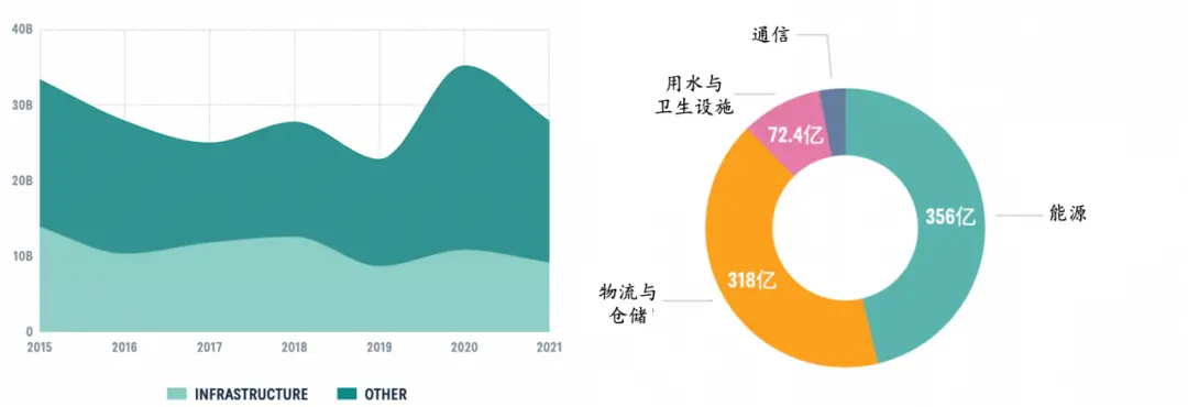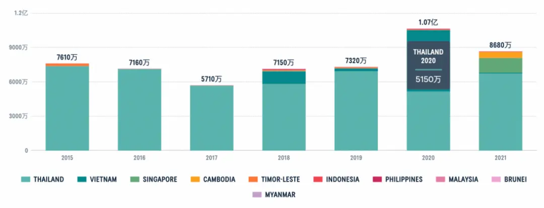 亚洲开发银行、日本的《2021年能源政策》等不再为东南亚地区新的燃煤发电或天然气勘探提供资金。日本承诺2022年底前停止向未减产的化石燃料项目提供公共资金。中国宣布不再在海外建设煤炭发电站。世界银行停止对上游石油和天然气的投资,对新的化石燃料提供零资金。然而,在大幅增加可再生能源的同时,支持更大区域能源需求的进展不足以推动该地区向低碳、有韧性的未来转变。 ▍趋势五:气候相关融资规模快速扩大,但前景依旧不明朗 过去50年来,东南亚一直是全球经济最活跃地区之一。东南亚国家共同建立了强大而有韧性的经济体,帮助数百万人摆脱了贫困。这些国家通过双边和多边方式相互提供援助,共同应对挑战。 尽管区域内发展融资在东南亚整体发展中占比较小,但2021年区域内流动融资额达到8600万美元,增长了14%。与新冠疫情支持相关的付款以及基础设施项目实施,使得2020年该地区内发展融资大幅增长45%,达到1.06亿美元。 所有ODF都以赠款形式提供,但泰国基础设施项目除外,这些项目通过优惠贷款资助。约三分之一区域内发展资金分配给基础设施项目,重点是公路运输和燃煤发电厂。对基础设施的重视与泰国和越南发展重点一致。如果排除这两个国家,东南亚地区发展筹资主要集中在卫生和人道主义援助方面。 每个东盟成员国每年向东盟灾害管理人道主义援助协调中心(AHA)提供同等数额捐款,该政府间中心旨在促进东盟成员国在该地区灾害管理和应急响应方面协调与合作。这些捐款共计430万美元,占文莱、马来西亚、缅甸和菲律宾提供的区域内资金的大部分。 当本地区发生自然灾害时,东盟成员国会向东盟人道协会提供更多临时资金。例如,2018年印尼中苏拉威西岛发生7.5级地震引发海啸后,东南亚国家通过AHA向印尼提供了大量资金。 东南亚区各国互相提供的官方发展融资规模