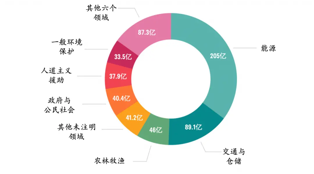 近年来,印度尼西亚在2016年获得的资金大幅增加,原因是两个项目获得了贷款。菲律宾在2017年获得了额外的气候融资,用于实施社会服务项目。越南的年均付款额略低于15亿美元,自2019年以来略有增长。马来西亚的气候发展融资在2017年激增后回落。老挝在2015年是第三大接受国,但融资额持续下降。 以人均年收入为基础评估,老挝的人均气候相关发展融资支出遥遥领先,为883美元。马来西亚的人均支出最低,仅为36美元。缅甸是该地区最贫穷的国家,人均国内生产总值仅为1209美元,每年人均获得的资金相对较少,仅为4.30美元。尽管印度尼西亚是气候发展资金的最大目的地,但由于人口众多,年人均支出仅为8.62美元。 (二)能源转型融资方面的挑战 气候发展资金主要投向能源领域,推动中央输电网和水力发电厂建设。2017年能源领域资金投入达到高峰,得益于中国大型项目。自2017年以来,尽管能源相关融资下降,但在气候相关倡议中仍占主导地位。运输和仓储是气候相关付款的第二大领域,重点关注铁路基础设施,如曼谷大众运输系统项目。专门处理适应问题的部门虽然重要,但每年获得的资金不足7亿美元。 按部门划分的气候发展融资