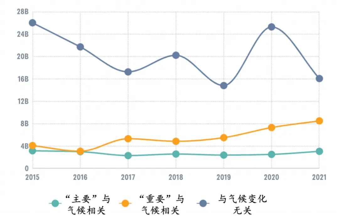 已签署项目来看,中国在东南亚地区的作用呈现出截然不同的景象。除水和卫生设施领域外,中国在该地区的整体作用相对较小,但在新基础设施交易中占据主导地位。2015年至2021年期间,中国基础设施对外援助承诺额平均每年约为120亿美元,是第二大合作伙伴日本的三倍,超过该地区基础设施对外援助承诺总额的一半。在承诺额方面,中国约占运输和仓储部门项目总额的65%,能源对外援助承诺的近一半,以及通信部门的近40%。 综合来看,中国在该地区的承诺规模表明,相较于其他合作伙伴,中国向东南亚地区提供的基础设施融资潜力显著。尽管中国在项目承诺方面超过了许多传统开发金融提供者,但在实际交付方面,传统提供者仍然是具有竞争力的基础设施融资替代来源。 ▍趋势四:气候相关融资规模快速扩大,但前景依旧不明朗 相较于全球其他地区,东南亚将面临更严重的气候变化带来的经济损失。全球气候风险指数显示,东盟的缅甸、菲律宾、越南和泰国是受极端天气事件影响最严重的国家之一。如今东南亚国家已经认识到气候变化的风险,并采取措施应对,但需经济援助才能实现其计划,而气候发展资金增长速度不足以满足地区需求。 (一)规模稳中有升,但前景喜忧参半 2015年至2021年,东南亚的气候发展资金年均支付83亿美元,总额超580亿美元,占该地区ODF支付额的29%。被标记为“重要”的项目多于“主要”项目。2021年主要项目最多,表明国际社会对气候行动的重视。期间,气候发展资金增长59%,但主要增长来自重要项目。主要项目数量和比例均下降。与气候相关的ODF支付额增加,但新承诺额下降18%。贷款占气候相关项目付款的80%以上,优惠贷款仅占44%。老挝、缅甸和东帝汶的债务融资比例分别为89%、49%和30%。三国债务负担重,中国、日本和亚开行是主要贷款方,德国、英国和澳大利亚是赠款融资的主要提供者。 气候相关的开发融资比例