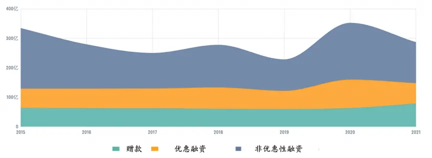 中国发放的资金中,85%为非优惠贷款,来源于中国进出口银行和国家开发银行。10%为优惠贷款,5%为赠款,这表明中国侧重于为经济基础设施提供资金,并向高收入国家提供支持。 由于马来西亚和泰国的高铁项目遭遇严重延误,中国在2020年和2021年期间融资规模有所下滑,被部分传统开发金融提供者赶超,不再是该地区的主要ODF提供者。 (三)传统的发展伙伴提供了大部分的官方开发金融,通常用于基础设施以外更广泛的发展目的 传统开发金融提供者贡献了ODF的近80%和官方开发融资的90%以上。中国ODF主要投向基础设施和区域发展,而传统合作伙伴则侧重治理问题。亚开行和世界银行是地区主要多边开发银行,年度融资额分别达45亿美元和40亿美元。这两家银行通过非优惠贷款为较大新兴经济体提供服务,同时为东南亚欠发达经济体提供赠款和优惠贷款支持。2020年和2021年,亚开行因应对疫情冲击成为地区最大ODF来源。 主要官方开发融资渠道的规模变化
