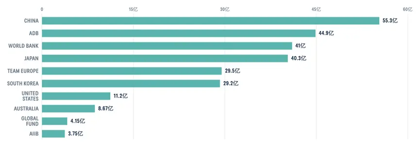 印度尼西亚是东南亚最大的经济体和气候发展资金的最大接受国,在2015年至2021年期间获得超过165亿美元的资金。菲律宾和越南紧随其后,分别获得111亿美元和103亿美元。老挝获得了66亿美元,而东帝汶和马来西亚则远远落后,分别获得12亿美元和6.5亿美元。 东南亚各国气候开发融资情况