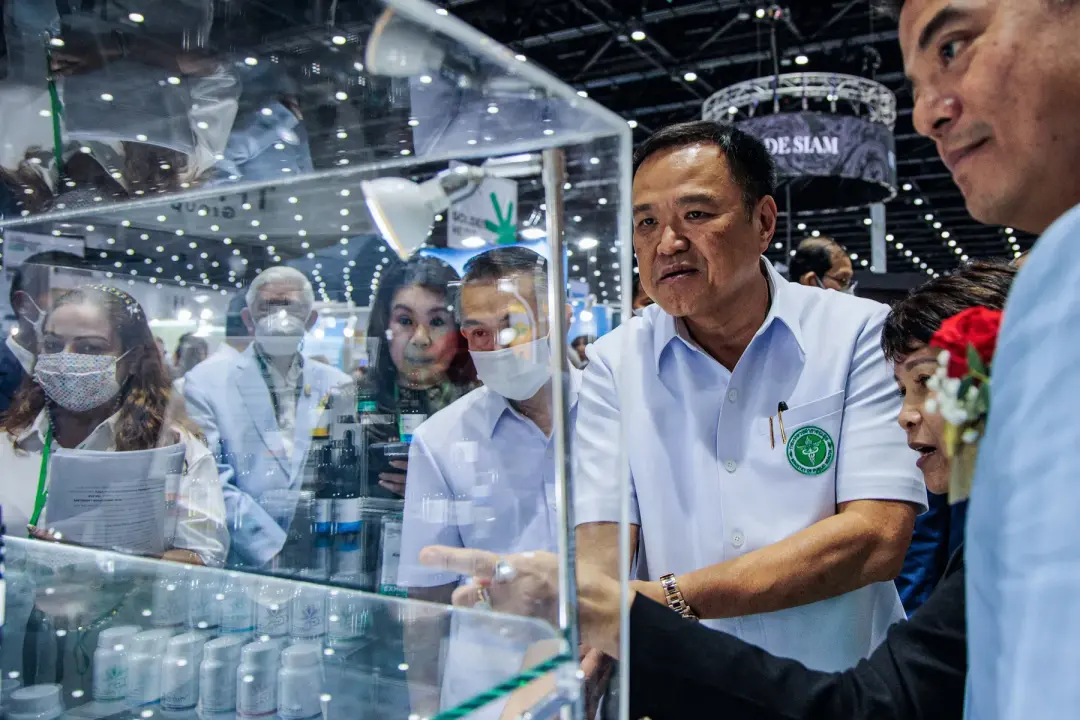▎ 2022年11月30日,阿努廷站在曼谷诗丽吉王后国家会议中心亚洲大麻博览会的CBD油货架前。图源:Shutterstock 在其官方脸书专页中, 自豪泰党还强调,阿努廷不仅是一位成功的企业家,也是“翼心救援团”志愿飞行员项目的创立者和参与者。
