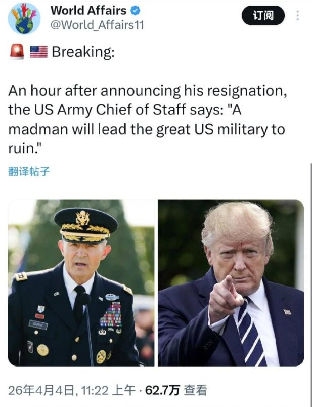 从越来越多的信号来看,特朗普已经开始认真考虑发动地面战争。4月2日,美国陆军参谋长兰迪·乔治上将突然被国防部长皮特·赫格塞思勒令“立即辞职退休”,这正是特朗普可能要发动地面战争的重要人事信号。要知道,乔治上将此前一直明确反对扩大战争规模。
