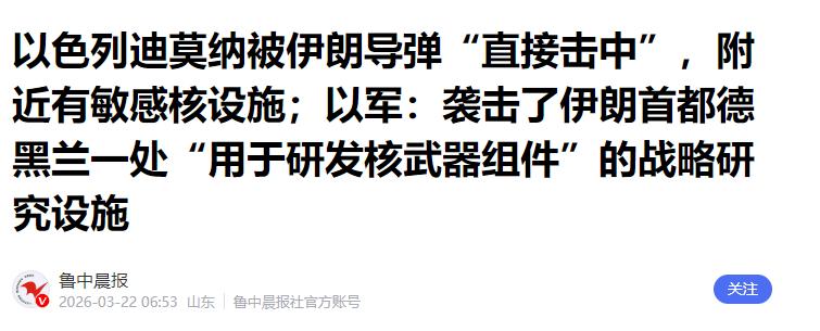 3月15日,伊朗发射的12枚弹道导弹击中了以色列内盖夫沙漠的迪莫纳核基地,造成基地部分设施受损。
