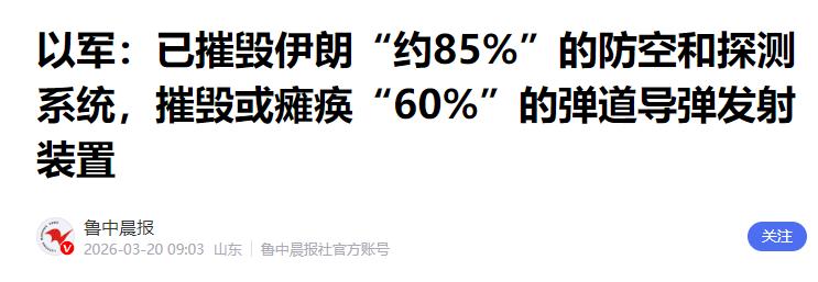 以色列国防军3月19日正式通报,美以联军通过1000余次精准空袭,投下1.8万枚各型炸弹,打击了4000余个军事目标。