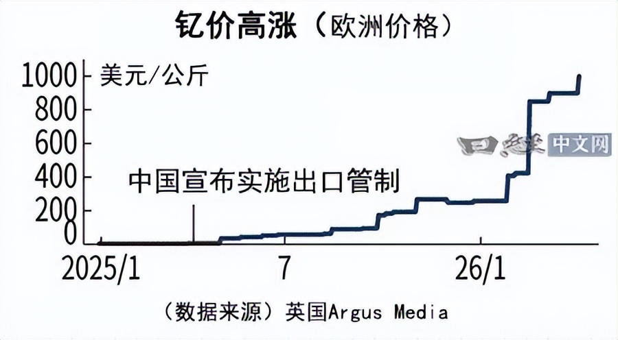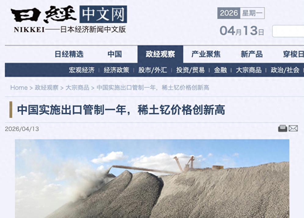 就在昨天,日经新闻中文版刊发了一篇报道,直指中国出口管制已满一年,稀土价格还在继续攀升。截至4月9日,欧洲市场钇的价格已经冲到每公斤1000美元,比一周前涨了11%,创下2012年有记录以来的新高;铽也达到每公斤4150美元,比一年前涨了足足4倍。
