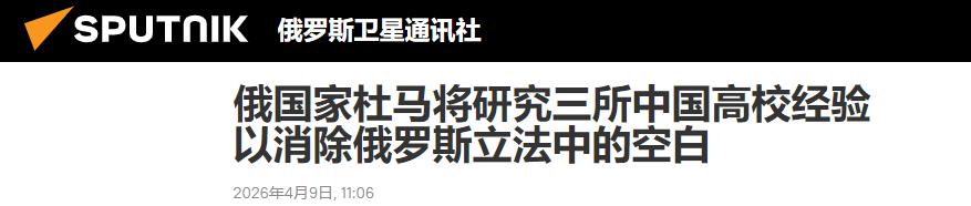 参考来源:俄国家杜马将研究三所中国高校经验以消除俄罗斯立法中的空白——俄罗斯卫星通讯社