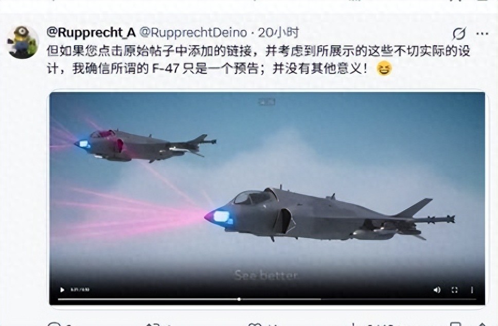 他在2月25日当天发了什么?他说美国放出来的F-47渲染图"几乎可笑",建议有人把中国沈飞的歼-35和其他在研机型摆在旁边做个对比图,让大家看看到底谁在画饼、谁在造飞机。他直言不讳地判断,目前公开的F-47不过是个"预告片",距离真正的战斗机还差十万八千里。