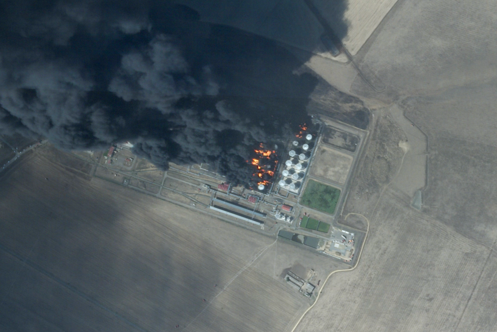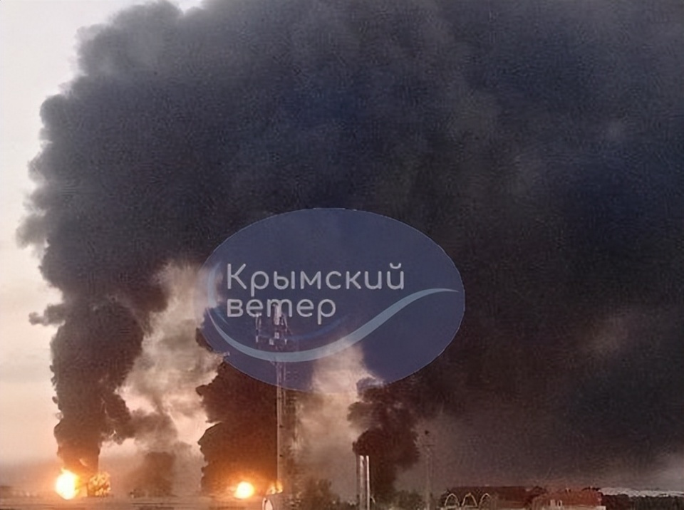 克里米亚石油码头 在五军无人机袭击后燃烧