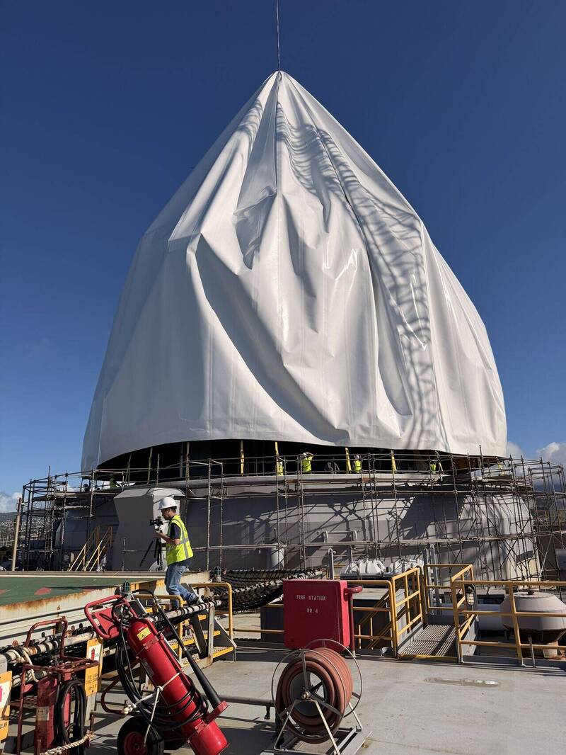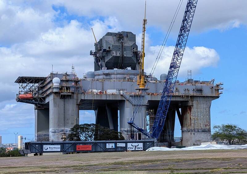 美军将海上钻井平台改装为能追踪洲际飞弹的雷达站,长期部署在阿拉斯加地区,近期则罕见到珍珠港大修,当工厂将雷达罩拆除时,巨大的阵列雷达本体及其粗旷外型,令人不禁联想到未来科幻星战中的武器。 SBX-1属于自航式石油平台,可机动航行。 (图取自X@Metall556) 军闻网站“The Warzone”报道,隶属于飞弹防御局(MDA)的SBX-1至今已服役20年,虽母港为阿拉斯加的阿达克岛,且每一半年至少会到福克斯群岛维修,但由于其雷达保护罩寿命届期,因此航行至珍珠港更换。 同时,该平台将会到德州墨西哥湾执行委内瑞拉的任务。 SBX-1于珍珠港更换雷达罩。 (图取自X@lfx160219) SBX-1属于自航式石油平台,整体长约118米、宽72米、高85米,等于至少25层楼高,当充气雷达罩拆除后,雷达本体显得高科技却又粗犷,平整的表面给人冰冷的感觉,如同科幻小说中的未来大型武器,平台本身编制85名船员,并能在没有补给时连续运作两个月; 阵列雷达本身则包含高达45000个收发器模组,其庞大规模需要复杂的水冷系统冷却,每分钟可循环多达1000加仑(约3785公升)的冷却液。 报道指出,服役20年的SBX-1,当时仅为实验型号,目的在追踪弹道飞弹轨迹,它还能区别诱饵弹和真正的弹头,传感器连接防御局网络并协助防空系统拦截。 虽然曾传言会改造更多石油平台为雷达站,以确保单位维修时能轮番上阵,但并未实现。 而SBX-1的优势在于其自身机动性,自航式石油平台能让它移动到前线,突破本土侦测限制并拓展预警范围,这是SBX-1仍未退役的原因之一。 图为SBX-1正面。 (图取自X@CaesarGI) 从SBX-1内部观看雷达,其内含45000个传感收发器模块。 (DVIDS) |