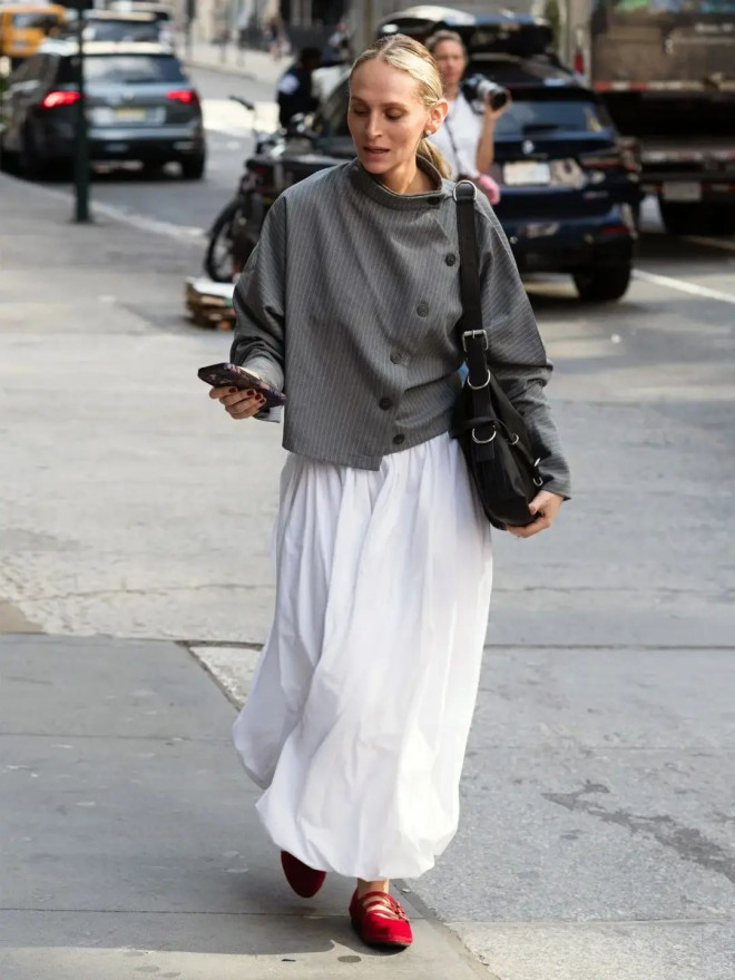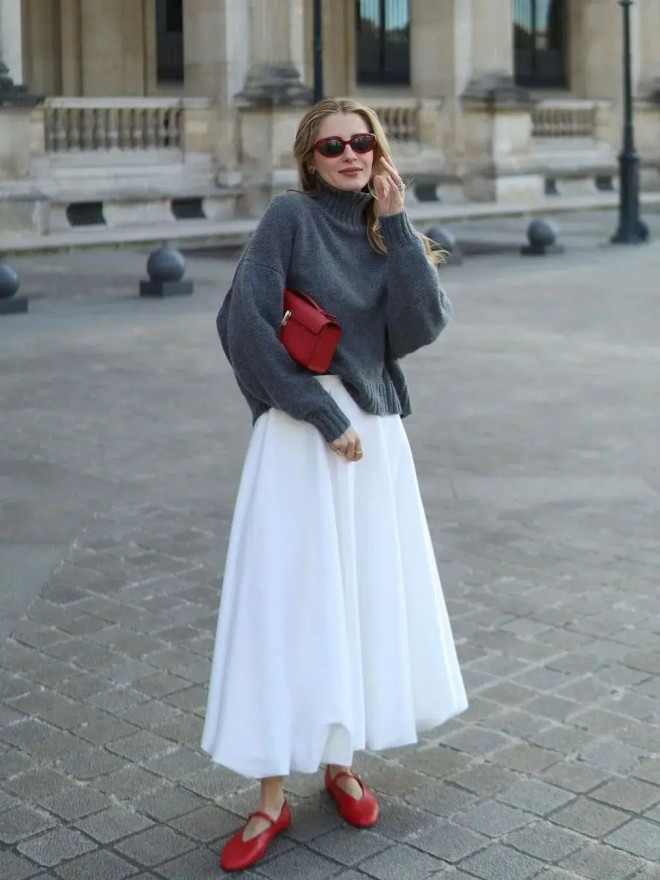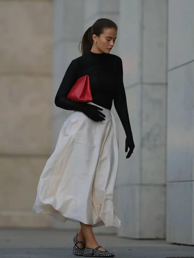 今年秋天的绝美搭配,来自优雅与精致并存的裙子+玛丽珍。 当裙摆随着脚步轻轻荡开,鞋子上的一条横带,便锁住了所有的复古与浪漫。 裙子+玛丽珍,仿佛一夜间,成为时尚圈的固定公式。 为什么这组搭配如此受宠? 我们既渴望浪漫与表达,又追求舒适与自在;我们想穿得时髦有氛围,又希望拥有经得起时间考验的经典。 而只有裙子+玛丽珍,能让你从步态到神态,不自觉地变得“精致”起来。 Anthropologie 2025 01 裙子+玛丽珍 越“复古”越时髦! LINK FASHION 裙子与玛丽珍,是一组复古氛围极浓的搭配。 而想穿好这组搭配的第一步,也绝对离不开复古元素的巧妙结合。 例如, 选择一条复古的裙子, 从波点半裙、丹宁牛仔到格纹印花等元素, 玛丽珍的乖巧能中和印花的繁复, 让整体造型甜而不腻。 Fashion Week 2025 也可以是选择复古味道更浓的玛丽珍鞋。 好比一双红色玛丽珍。 搭配白色裙子,法式氛围拉满, 穿出不费力的时髦,复古又精致。 亦好比一双带有复古图案的玛丽珍鞋, 豹纹玛丽珍、波点玛丽珍或老花玛丽珍...... 搭配秋冬的深色系裙子, 不张扬,细节里却自带高级。 Fashion Week 2026 Madewell 2025 Fashion Week 2025 02 裙子+玛丽珍 越“蓬”越优雅! LINK FASHION 今年很流行蓬量感穿搭, 哪怕是走精致、气质的审美路线, 也能在这样的氛围里找到独特的时髦。 而蓬松,可以是裙摆的长度, 与玛丽珍鞋的搭配, 越长反而越好驾驭, 既优化了腿部的线条, 也让下半身看起来更修长、更秀气。 Fashion Week 2026 Celine 2026 而蓬松,也可以是A摆的裙子, 裙摆要够宽,才更显优雅浪漫的气质。 无论是搭配衬衫还是针织、西装, 玛丽珍都能带来了柔美与精致、 随意与规整的完美平衡。 Fashion Week 2025 像今年十分流行的泡泡裙, 恰好是蓬量感穿搭的标志性单品, 也是Bubble Girl的风格趋势。 不同于运动鞋的随性, 也区别于细高跟的凌厉, 玛丽珍鞋独有一份恰到好处的正式与少女感, 为日常通勤注入一抹灵动的精致。 03 裙子+玛丽珍 越“硬朗”越好看! LINK FASHION 裙子配玛丽珍, 若能选择一条硬朗的裙子, 则能避免全身都陷于软塌塌的柔媚, 轻松穿出得体又精致的美感。 硬朗线条的裙子, 当属一条百褶裙。 书卷气质浓厚的百褶裙, 与玛丽珍的精巧碰撞, 走出了减龄又轻盈的时髦。 更能巧妙地营造脚踝处的纤细视觉, 并与小腿线条形成连贯的延伸。 Fashion Week 2026 Mango many please 2025 硬朗线条的裙子, 更离不开硬朗的面料质地。 从漆皮裙、西装裙到灯芯绒裙, 这些区别于夏季飘逸轻盈的薄纱单品, 却能与玛丽珍鞋形成独特的气质氛围, 更不容易在厚重的秋冬时节, 穿出头重脚轻的即视感。 裙子与玛丽珍的流行,并非偶然。 在保持精致优雅的同时, 绝不牺牲舒适与实穿性。 我更愿意将这组搭配称为: 可奔跑的优雅。 你可以很女人,但不必柔弱; 你可以很甜美,但不必幼稚; 你可以很复古,但依然鲜活。 当你不知道如何 将一身裙装变得更“完整”时, 就穿玛丽珍鞋吧! |